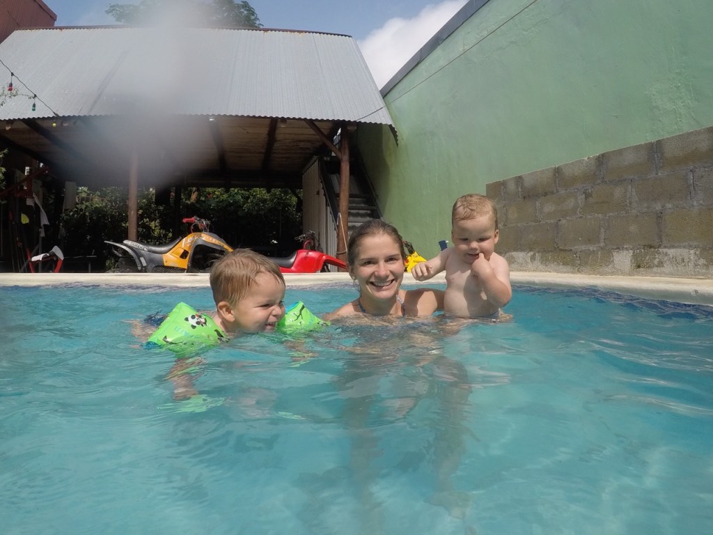 Am 16.11. verließen wir den Nordwesten der Halbinsel Nicoya und fuhren nach Sámara, einem kleinen Dorf mit schöner Bucht und absolutem Surfparadies. Michael probierte sich auf dem Surfbrett und wir hatten eine sehr familiäre Unterkunft inmitten einer costa-ricanischen Großfamilie mit Pool. Emil und Theo hatten Gleichaltrige um sich und durften Bagger, Bobbycar und co der Family nutzen. Zu einem Kindergeburtstag wurden wir auch eingeladen.