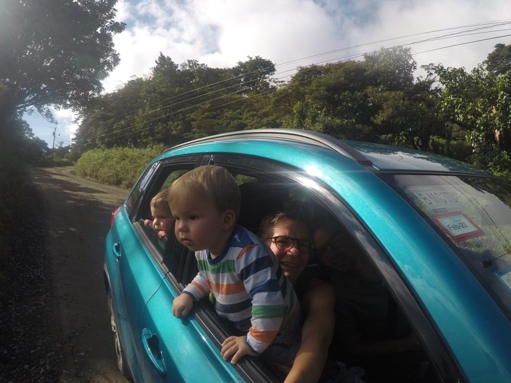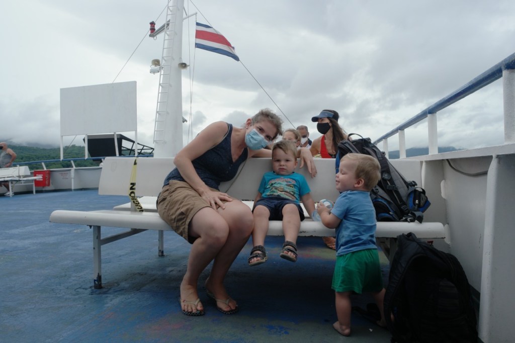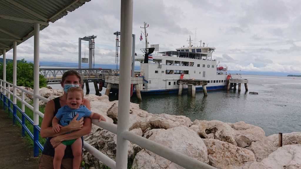 Wir verlassen gut gebräunt und nach drei Wochen nun so richtig im Reiserhythmus angekommen die wunderschöne Halbinsel Nicoya. Wir müssen zum ersten Mal unseren Windelvorrat auffüllen und sind nach wie vor froh einen Mietwagen dabei zu haben um unser Gepäck (gefühlte 90% davon für die Kids) komfortabel zu transportieren. Wir wollten die Fahrstrecke abkürzen und entschieden uns für eine Fährfahrt zurück aufs Festland. Beim zweiten Fährhafen ergatterten wir ein Ticket und genossen die 1,5 stündige Schifffahrt.