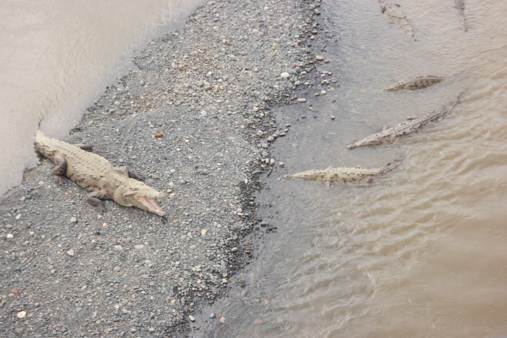 Nach den zwei nassen Tagen in Monteverde ging es weiter Richtung Süden an die Pazifikküste nach Quepos, natürlich nicht ohne an einer der Brücken zu halten, von denen man die (zum Glück nur im Süßwasserfluss beheimateten) Krokodile beobachten kann. Da lobe ich mir die deutschen Flüsse, wo man mal unbedarft die Füße reinhalten kann. 😀