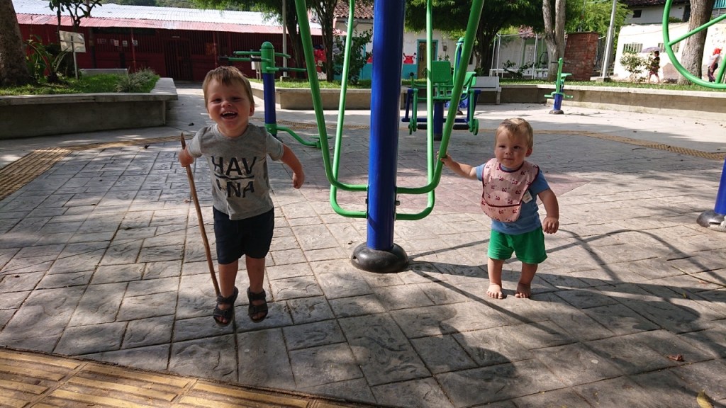 Von Cali aus ging es am 18.12. weiter Richtung Norden nach Armenia mit ca. 300.000 Einwohnern in eine deutlich kleinere Stadt. Für die ca. 200 km mussten wir etwa 4 Stunden reine Fahrzeit einplanen. Unsere Mittagspause verbrachten wir in einem sehr kleinen Dorf nahe der „Autobahn“. Auf dem dortigen Marktplatz wurden wir mit unseren Jungs sehr schnell zur Hauptattraktion und waren nach kurzer Zeit von etlichen einheimischen Kindern umringt. Die Kids (ca. zwischen 6 und 12 Jahren) wussten nicht, dass es außer dem amerikanischen Kontinent noch weitere Kontinente wie Europa auf der Erde gibt und um so faszinierter waren sie von unseren Erzählungen. Es wurde viel gelacht, gespielt, gesungen und gegessen. Einer dieser unvergesslichen Reisemomente und das Bewusstsein, dass wir alle eine große „Menschenfamilie“ sind, egal welche Sprache, welche Kultur oder Herkunft. Wohlwissend, wie privilegiert wir sind, reisen zu können und im Wohlstand zu leben.