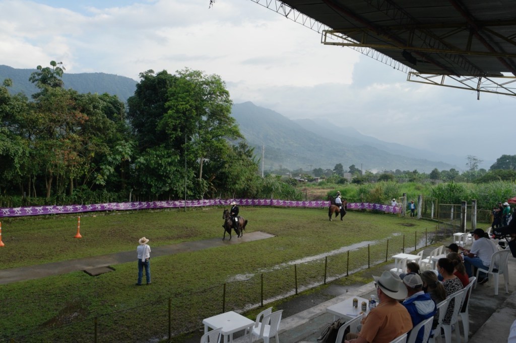 Armenia liegt im Herzen einer großen Kaffeeanbauregion. Da wir keine Kaffeetrinker sind haben wir uns auf die leckeren Trinkschokoladen konzentriert, die aus frischem Kakao gewonnen werden und ungezuckert bitter schmecken. Armenia selbst bietet mit seinen vielen Parks und hügeliger Umgebung einiges. Wir besuchten den botanischen Garten mit seinen zutraulichen Schmetterlingen und zahlreichen Kolibris. Zufällig kamen wir an einer Reitanlage vorbei, an der ein Dressurturnier abgehalten wurde. Die herausgeputzten Pferde führten schnell trippelnd eine Art Tanz auf und traten gegeneinander an. Hier aber auch anderswo konnten wir fasziniert beobachten, welch enge Verbundenheit die Kolumbianer zu Pferden pflegen.