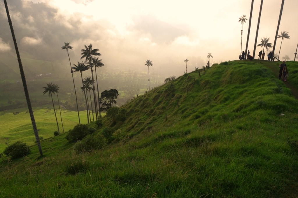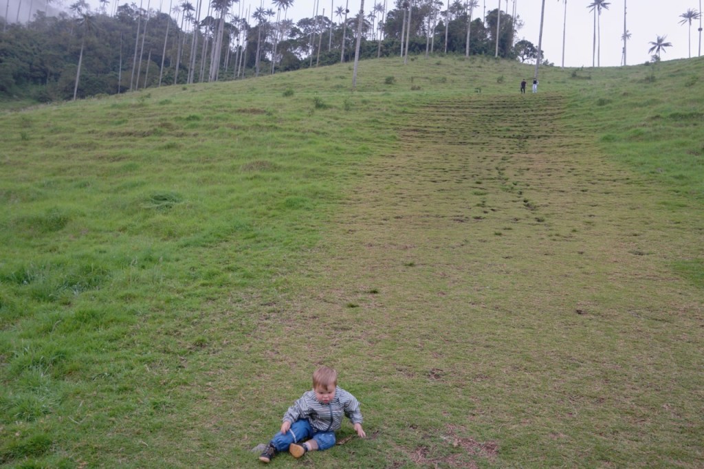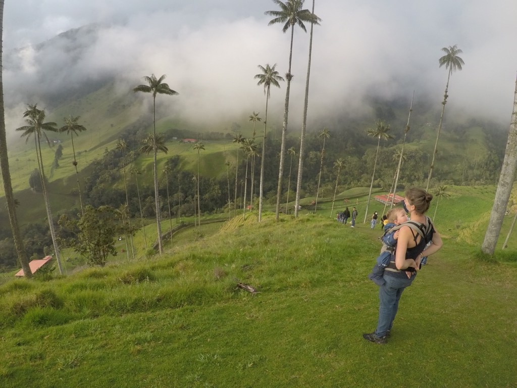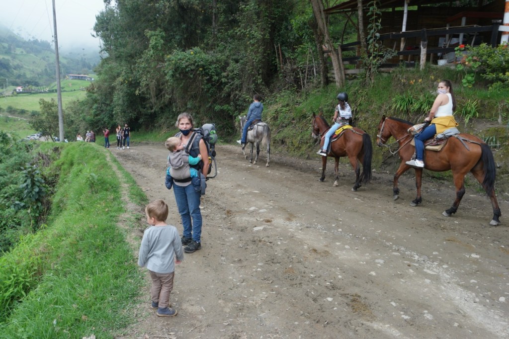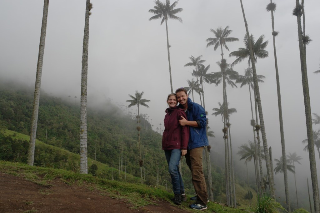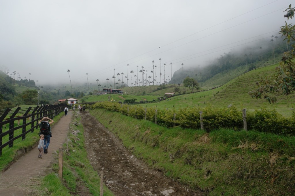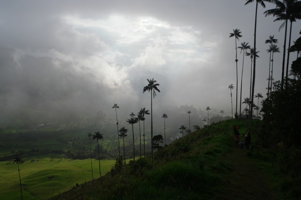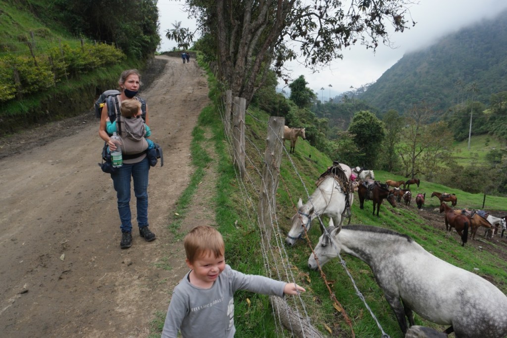 Ein weiteres Highlight war der Tagesausflug nach Salento und die wunderschönen grünen Täler, gespickt mit hochgewachsenen Wachspalmen. Die bis zu 60 m hohen Palmen sind die höchsten der Welt und können einige hundert Jahre alt werden. An diesem Sonntag waren auch zahlreiche einheimische Wanderer unterwegs. Viele jedoch zu Pferd. Etwas ungeplant entschieden wir uns für eine sehr steile Route und überwanden 600 HM auf etwa 2 km auf engen und matschigen Dschungel Pfaden. Jeder transportierte immer ein Kind + Verpflegung und wir waren froh als das Terrain flacher wurde und Emil (unsere Bergziege) wieder selbst laufen konnte. Der Blick in die nicht ganz wolkenfreien Täler entschädigte für die körperlichen Strapazen.