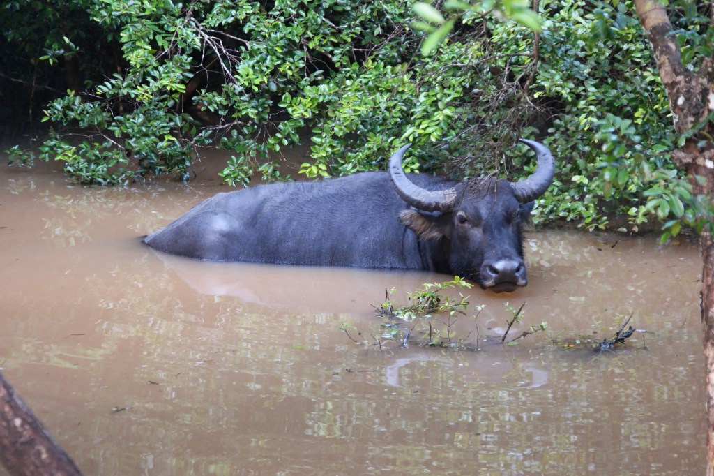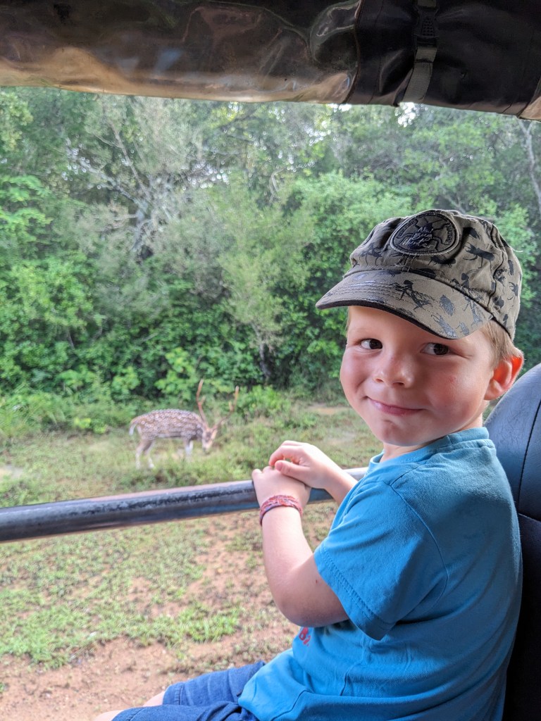 Unsere erste Safari in Sri Lanka stand auf dem Programm und mit einem geländetauglichen Jeep ging es morgens um 6 Uhr durch den Wilpattu Nationalpark. Die Nationalparks darf man nicht auf eigene Faust befahren und muss sich einen entsprechenden Fahrer buchen. Wir hatten richtig viel Glück und konnten eine Vielzahl von Tieren entdecken, wie z.B. einen Schwarzbären, Rehe, Wildschweine, Krokodile, Warane, Wasserbüffel, verschiedene Vögel, Affen, einen Leoparden auf dem Baum und einen Elefanten