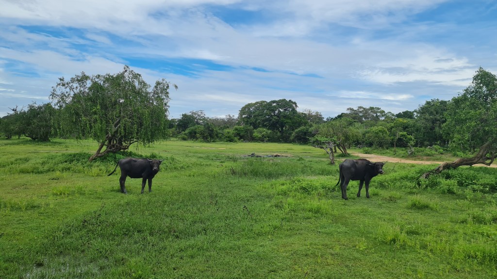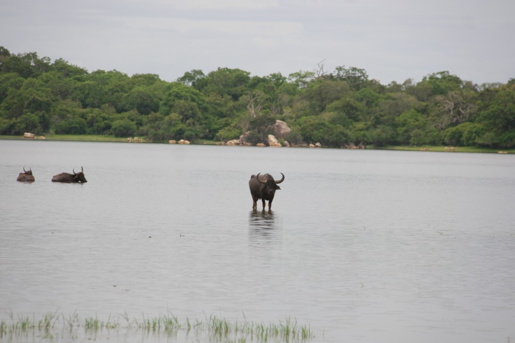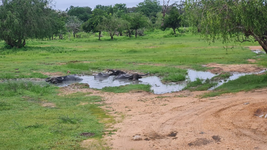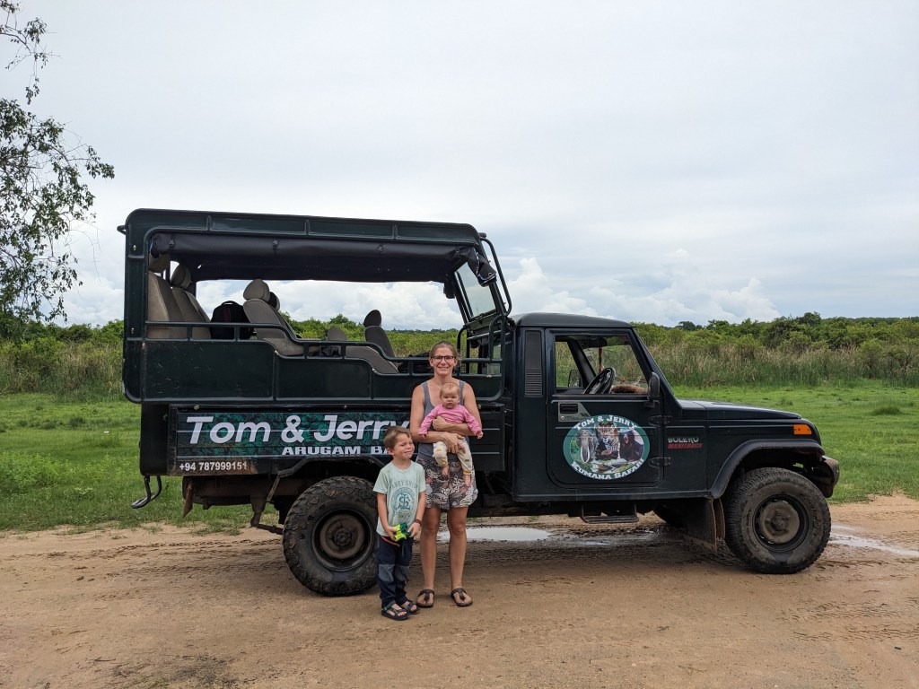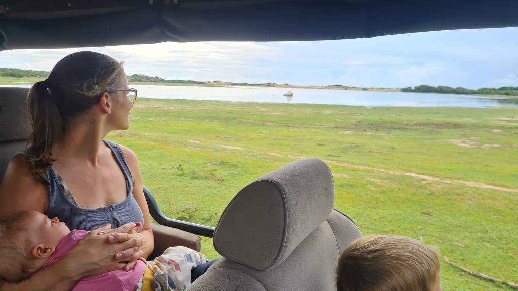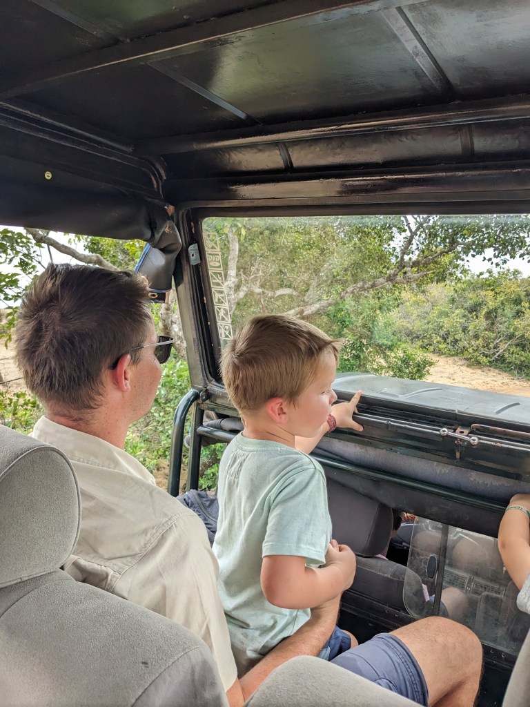 Unser 2. Safaritrip steht nun im Kumana Nationalpark an. Morgens um 5 Uhr geht es mit dem Jeep los in Richtung National Park (eine Stunde Anfahrt). Der Kumana ist ein nicht stark besuchter Nationalpark, es sind nur drei weitere Jeeps an dem Tag im Park. Wir entdecken wieder jede Menge verschiedene Tiere wie Wasserbüffel, Wildschweine, Elefanten, Krokodile, Vögel, … und eine sehr abwechslungsreiche Landschaft mit vielen Lagunen und unberührter Natur. Gegen 15 Uhr heißt es Entspannung für die Augen und wir verlassen den Park. Denn Safari, obwohl man nur sitzt, ist auch sehr anstrengend, da man sich gefühlt die Augen ausguckt. Käthe liebt Safari und schläft an diesen Tagen, bei dem Geschaukel, sehr viel und Emil und Theo haben immer etwas zu entdecken.