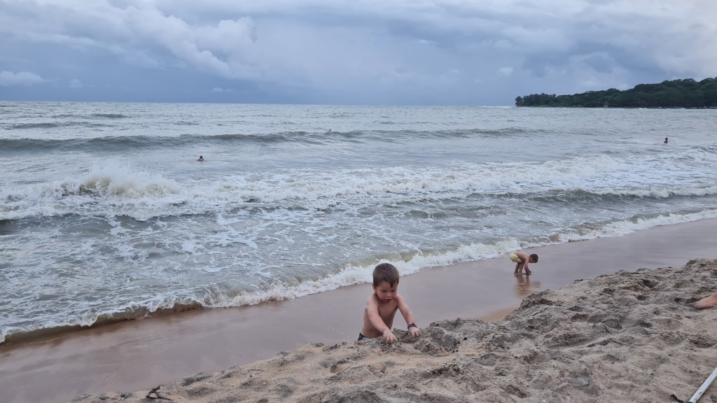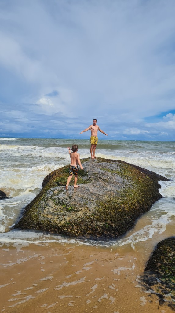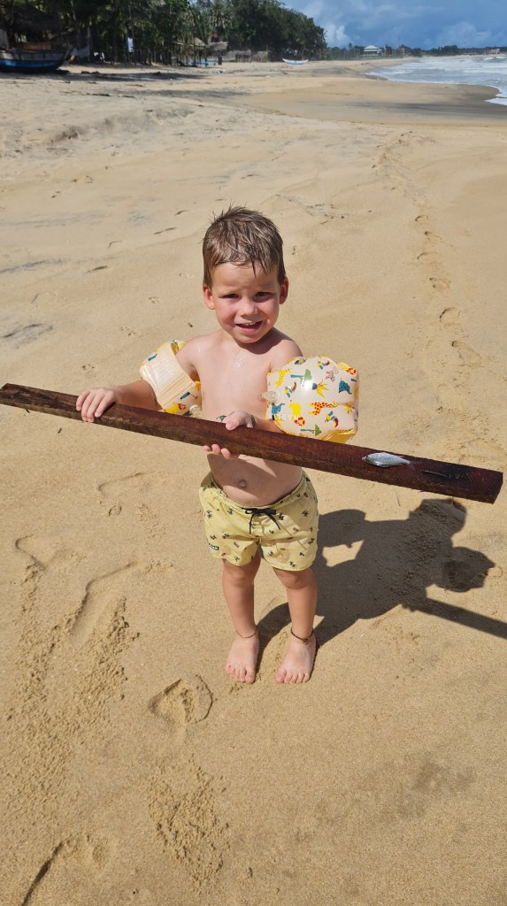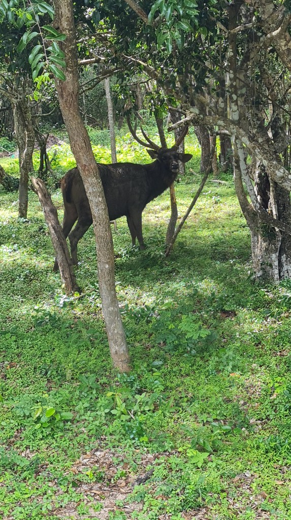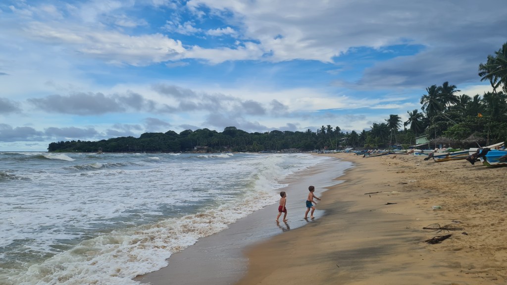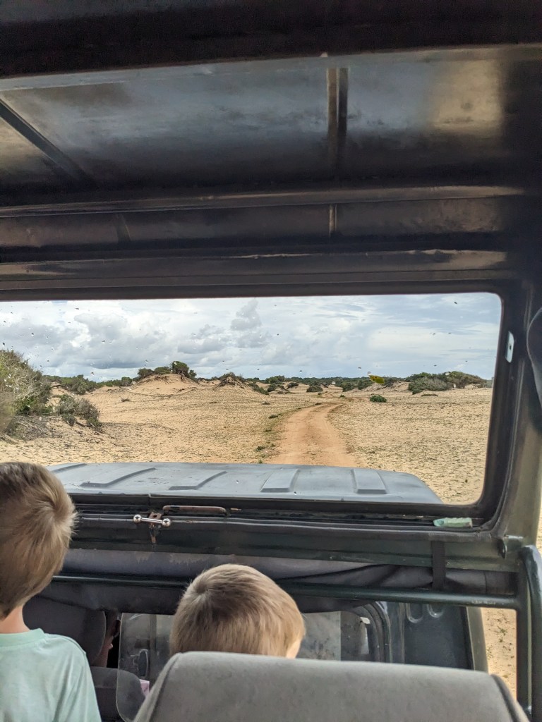 Unser 2. Safaritrip steht nun im Kumana Nationalpark an. Morgens um 5 Uhr geht es mit dem Jeep los in Richtung National Park (eine Stunde Anfahrt). Der Kumana ist ein nicht stark besuchter Nationalpark, es sind nur drei weitere Jeeps an dem Tag im Park. Wir entdecken wieder jede Menge verschiedene Tiere wie Wasserbüffel, Wildschweine, Elefanten, Krokodile, Vögel, … und eine sehr abwechslungsreiche Landschaft mit vielen Lagunen und unberührter Natur. Gegen 15 Uhr heißt es Entspannung für die Augen und wir verlassen den Park. Denn Safari, obwohl man nur sitzt, ist auch sehr anstrengend, da man sich gefühlt die Augen ausguckt. Käthe liebt Safari und schläft an diesen Tagen, bei dem Geschaukel, sehr viel und Emil und Theo haben immer etwas zu entdecken.