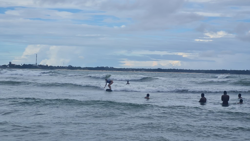 Weiter entlang der Ostküste ging es zu einem beliebten Surfspot nach Arugam Bay. Auch hier wieder wunderbare Sandstrände und tolle Küstenabschnitte und schon wieder etwas touristischer. Dank unseres Mietwagens erkunden wir die nähere Umgebung auf eigene Faust. Wir fahren durch zahlreiche Reisfelder, entdecken wilde Elefanten und große Krokodile. Zudem besuchen wir eine Ausgrabungsstätte mit alten Tempelanlagen und treffen auf Affen und Elefanten.
