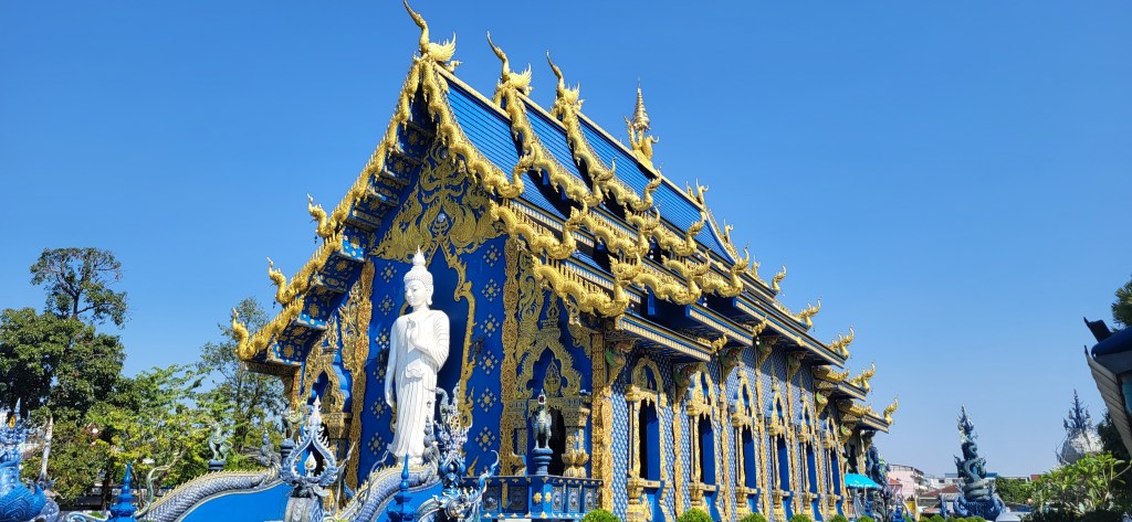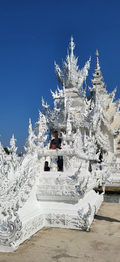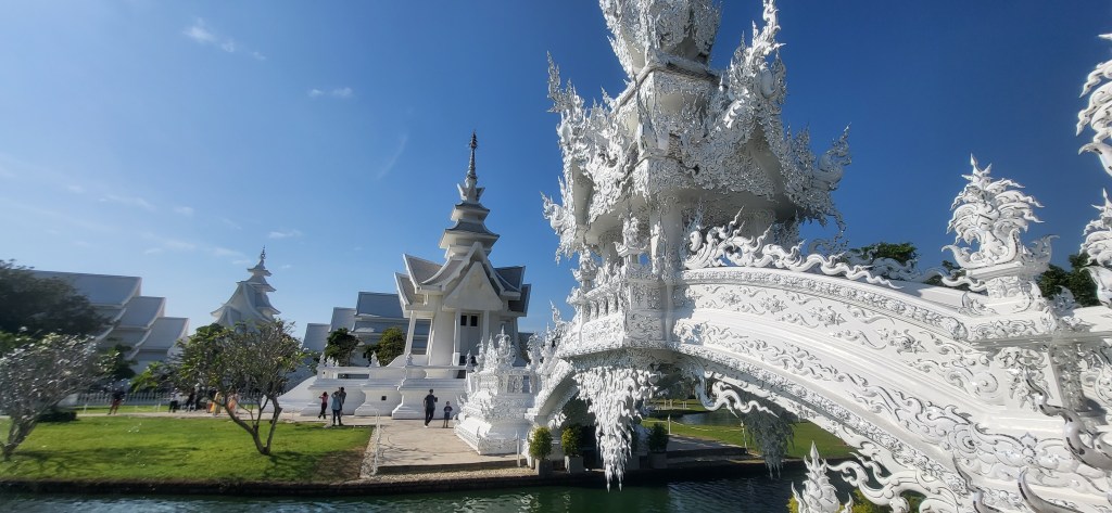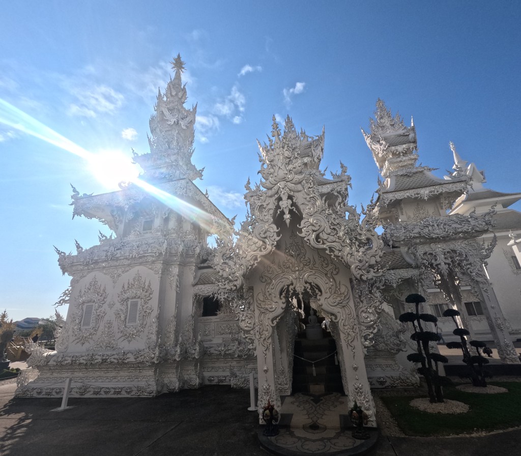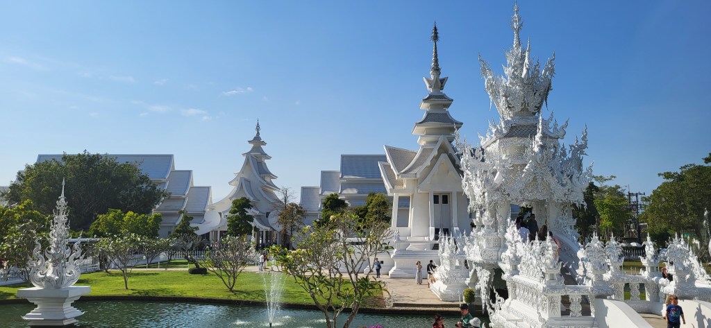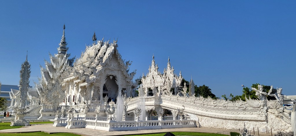 In Chiang Rai besuchen wir zwei der spektakulärsten Tempelanlagen Thailands, den blauen und den weißen Tempel und auch wenn wir in den vergangen Wochen schon zahlreiche buddhistische Tempel besucht haben, finde wir vor allem den weißen Tempel sehr beeindruckend.