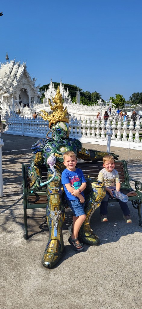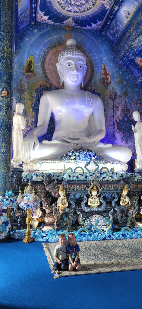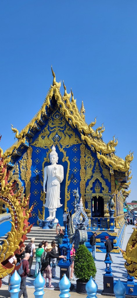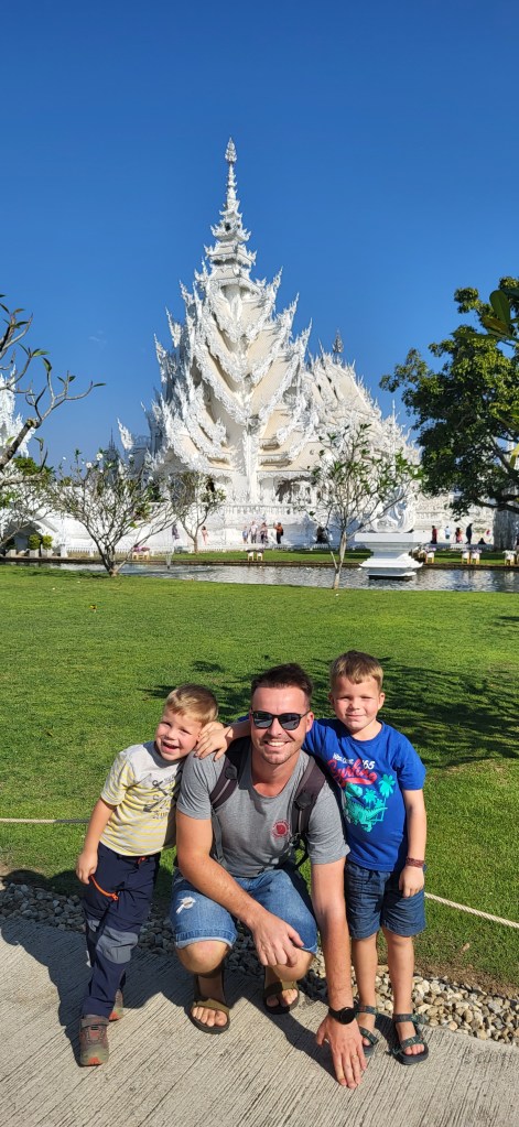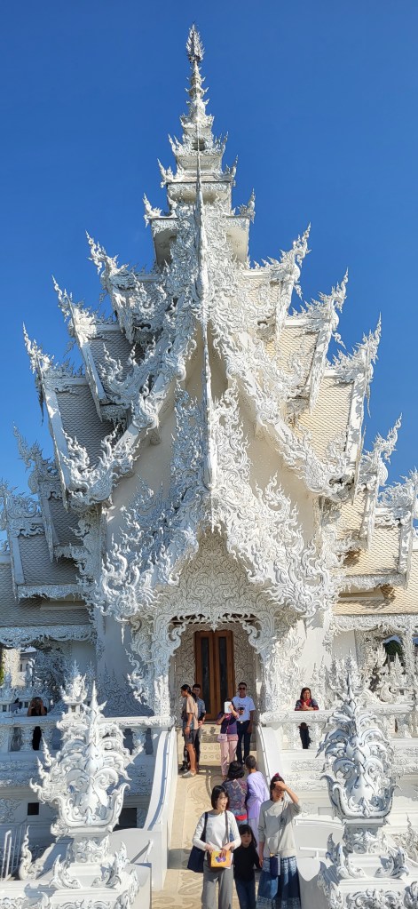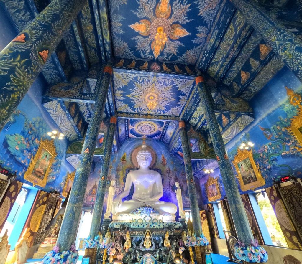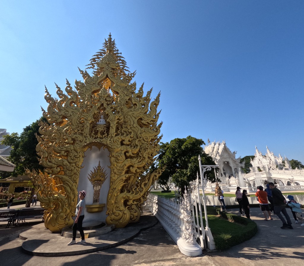 In Chiang Rai besuchen wir zwei der spektakulärsten Tempelanlagen Thailands, den blauen und den weißen Tempel und auch wenn wir in den vergangen Wochen schon zahlreiche buddhistische Tempel besucht haben, finde wir vor allem den weißen Tempel sehr beeindruckend.
