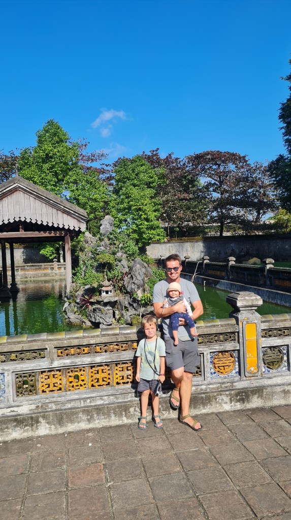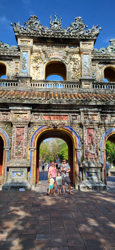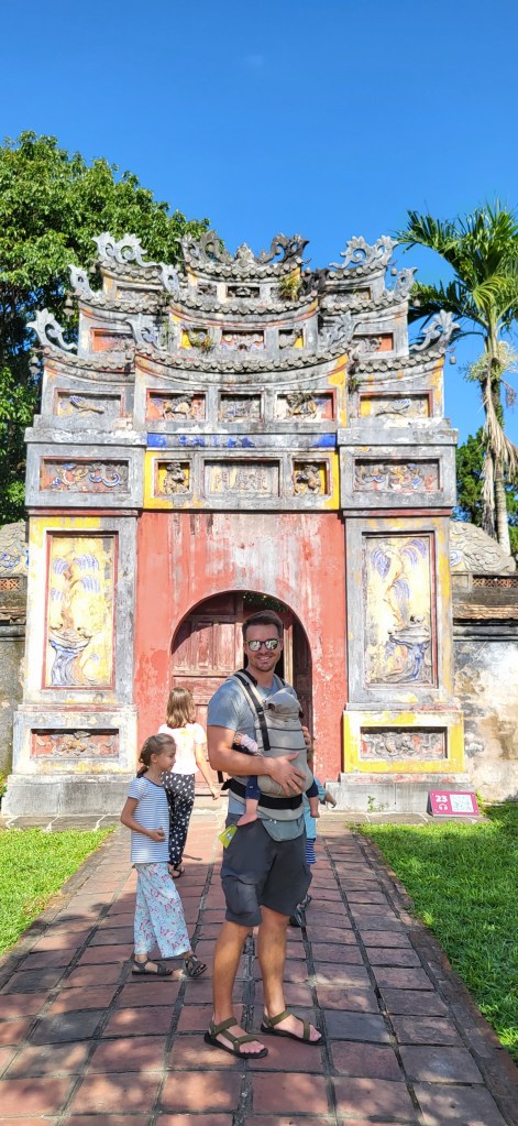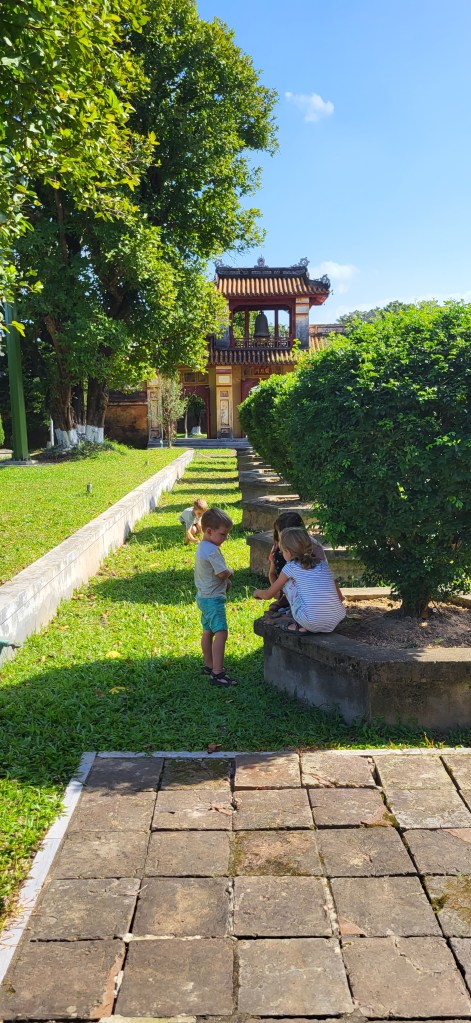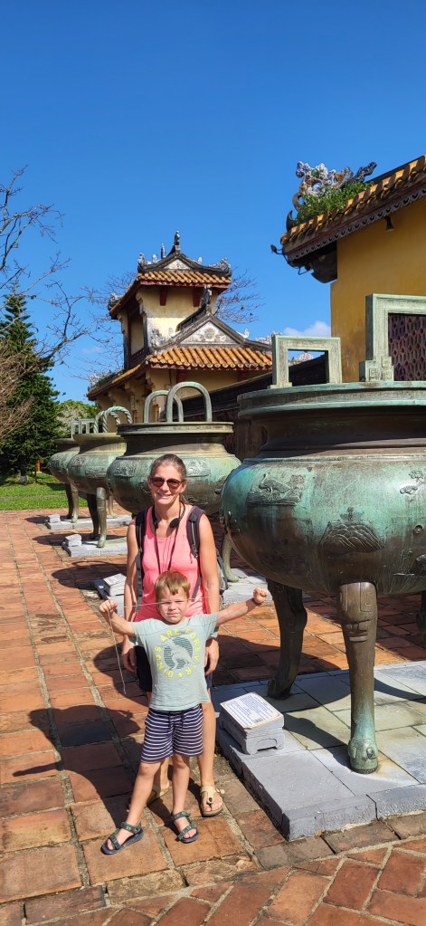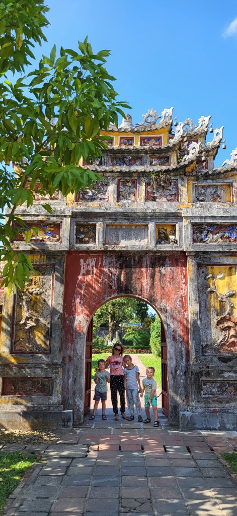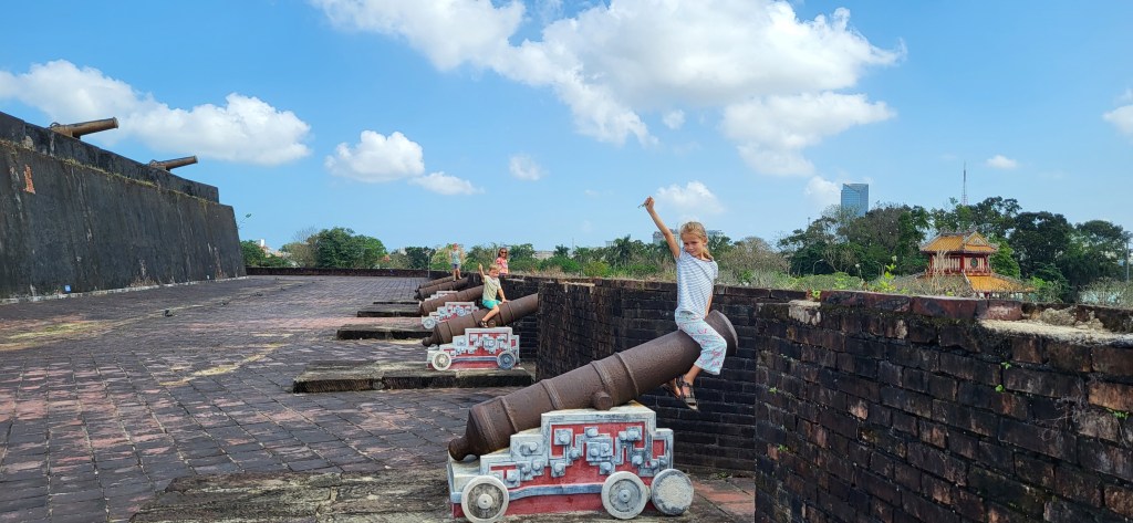 Bei heißen Temperaturen unternehmen wir einen ausgiebigen Tagesausflug zur Zitadelle, der früheren Residenz der vietnamesischen Kaiserfamilie Nguyen und erkunden das riesige Areal. Für die Kinder eine gute Mischung aus Abenteuerspielplatz und Geschichtsunterricht. Abends schlendern wir über den lokalen Markt von Hue und kommen mit vielen Einheimischen ins Gespräch.
