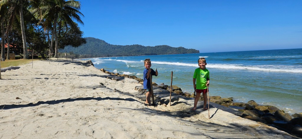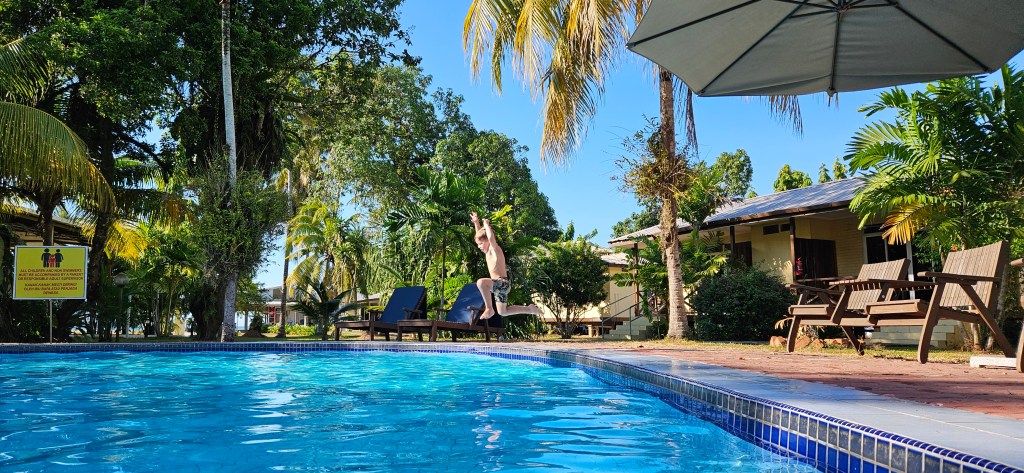 Die letzten Tage auf Borneo sind gleichzeitig die letzten Tage unserer langen, abenteuerlichen, faszinierenden, lehrreichen und einzigartigen Reise. Wir verbringen noch ein paar entspannte Tage unter Palmen, spielen ausgelassen im Sand und tauchen im Pool. Wir genießen das leckere Essen, die günstigen Preise und das wir uns nicht um einkaufen, kochen und abwaschen kümmern müssen.