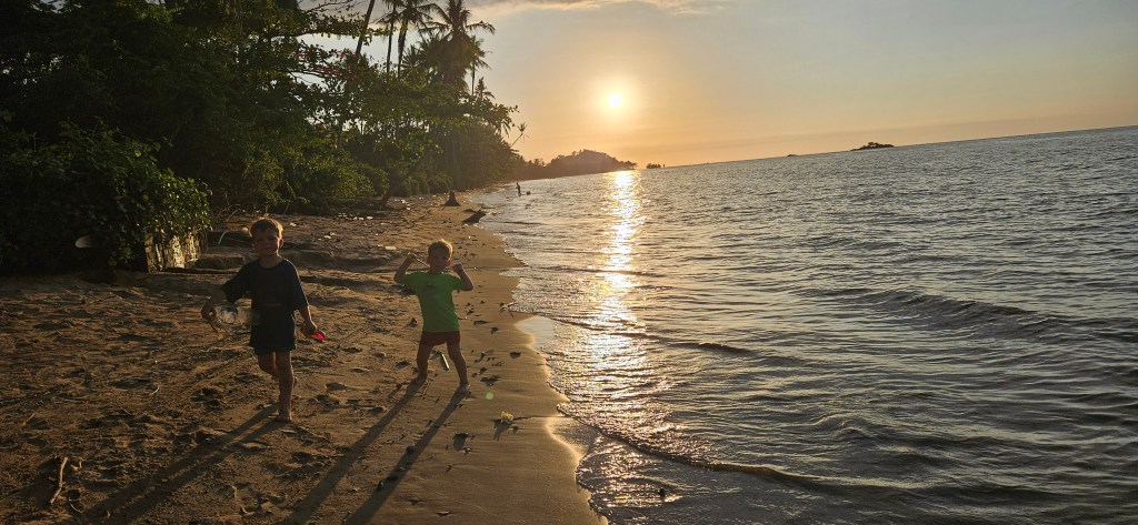 Zeit zum reflektieren der bewegenden Reise und gleichzeitig Zeit zum Pläne schmieden für zu Hause. Schade, dass unsere Reise endet, denn wir können uns tatsächlich vorstellen noch ein paar Monate dran zu hängen. Gleichzeitig freuen wir uns und die Kinder sich auf Familie und Freunde, auf das eigene Bett und den ein oder anderen heimischen Komfort. Ein schöner Gedanke wieder nach Hause zu kommen, jedoch freuen wir uns weniger auf den langen Heimflug. Aber noch ist es nicht so weit.