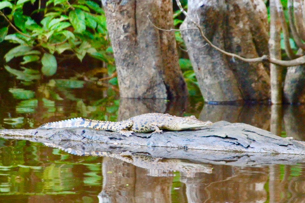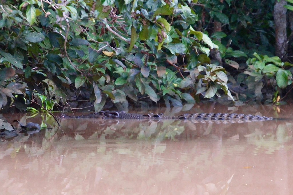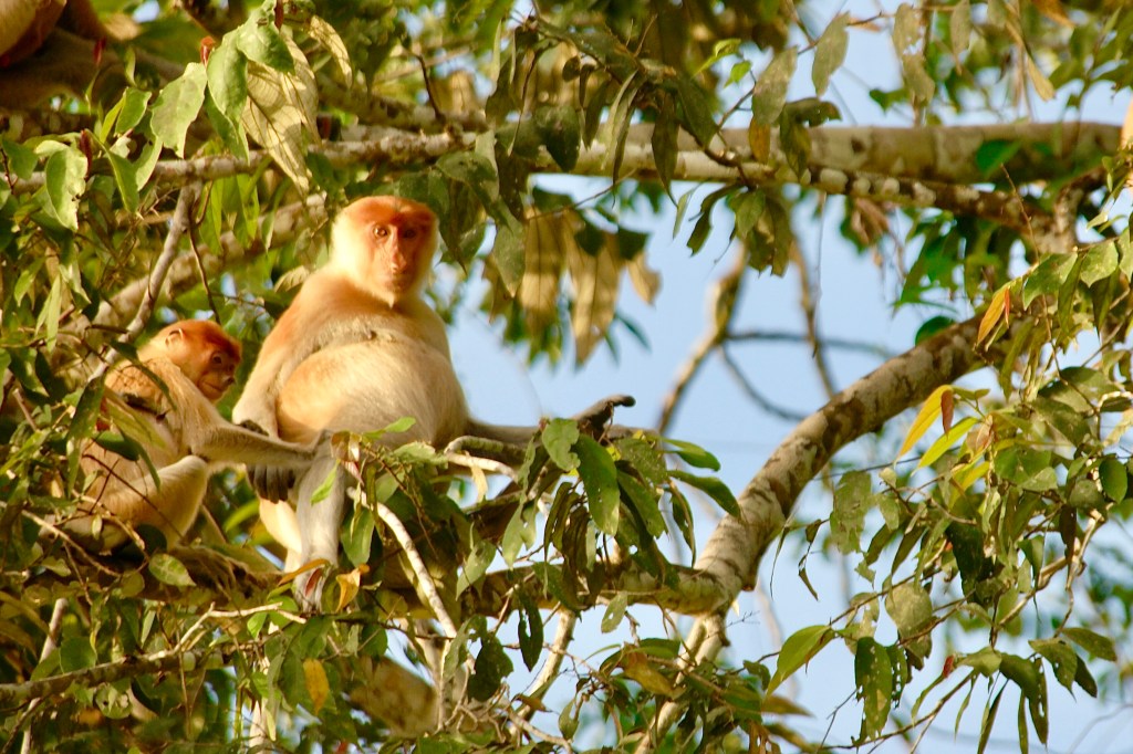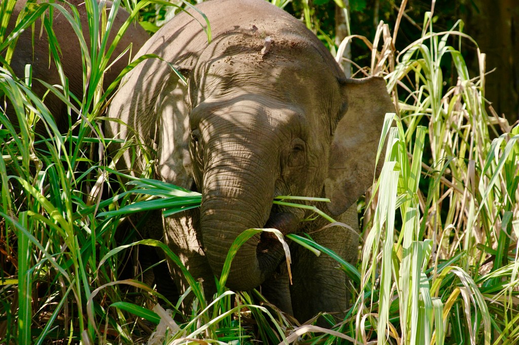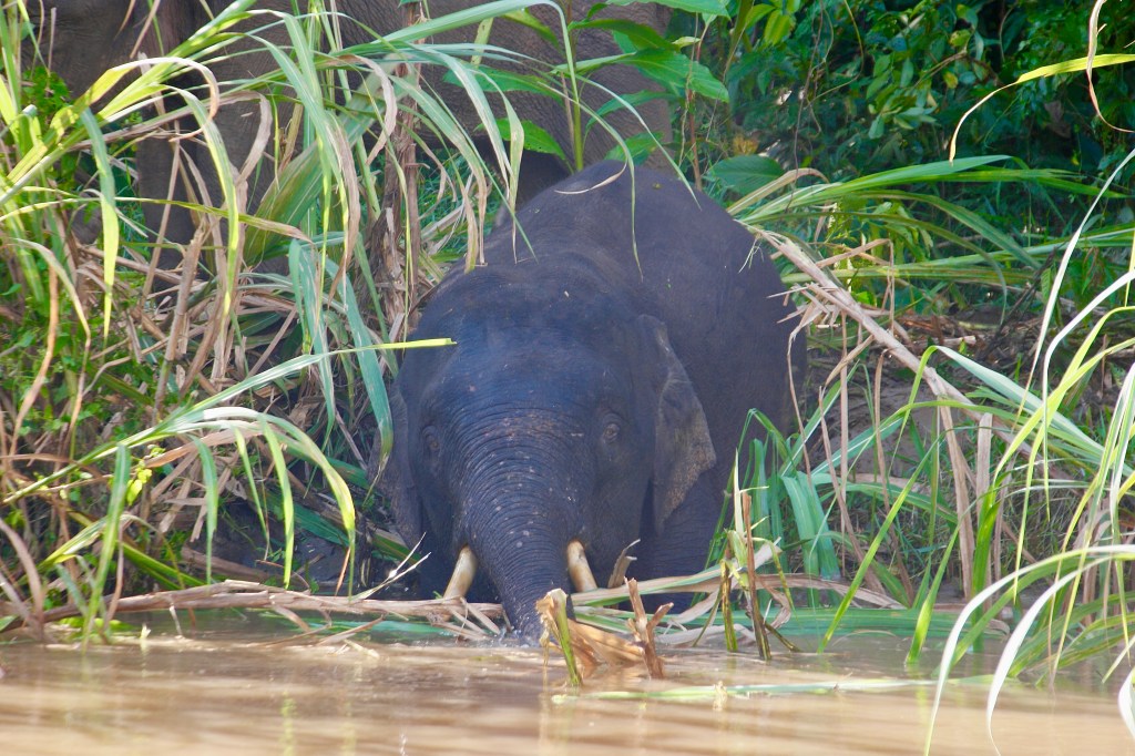 Weiter Richtung Osten und tiefer in den Bundesstaat Sabah hinein geht es in ein paar Autostunden zur Region um den großen Fluß Kinabatangan. Für uns bis dato unbekannt, bahnt sich hier einer der mächtigsten und artenreichsten Flüsse Südostasiens seinen Weg vom Bergland bis hin in die Sulusee. Nun verlassen wir endgültig die Zivilisation und verbringen die nächsten Nächte in einer Art großem Baumhaus. Die beste Art hier auf Entdeckungstour zu gehen, ist mit dem Boot und so unternehmen wir eine Reihe von Bootstouren mit einem erfahrenen Guide. Die besten Zeiten für Tiersichtungen sind früh morgens zum Sonnenaufgang oder abends zum Sonnenuntergang. Wir dürfen intakten Regenwald und atemberaubende unberührte Natur erleben. Schnell verstehen wir, warum der Kinabatangan Fluss als Amazonas Asiens bezeichnet wird. Wir sehen große Gruppen von Nasenaffen und können wilde Orang Utans beim Nestbau beobachten. Im Fluss sehen wir auch einige große und furchteregende Salzwasserkrokodile, die eine maximale Länge von 6m erreichen können. Auf unserer letzten abendlichen Bootstour haben wir auch noch das unverschämte Glück, die nur noch auf Borneo vorkommenden Zwergelefanten zu finden. Diese kleineren Verwandten des asiatischen Elefanten sind nicht so klein, wie der Name vermuten lässt und obwohl wir auf unserer Reise schon öfters Elefanten gesehen haben, sind wir fasziniert von diesen magischen Tieren. Leider gibt es nur noch ungefähr 1000 Tiere und sie sind extrem stark vom Aussterben bedroht.