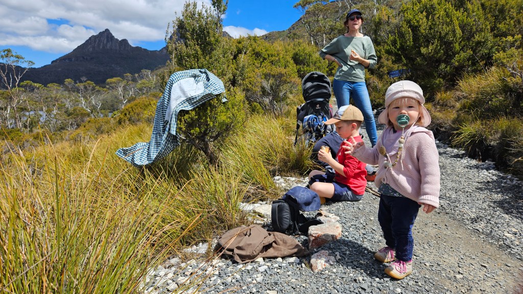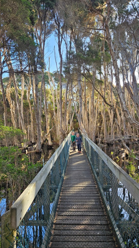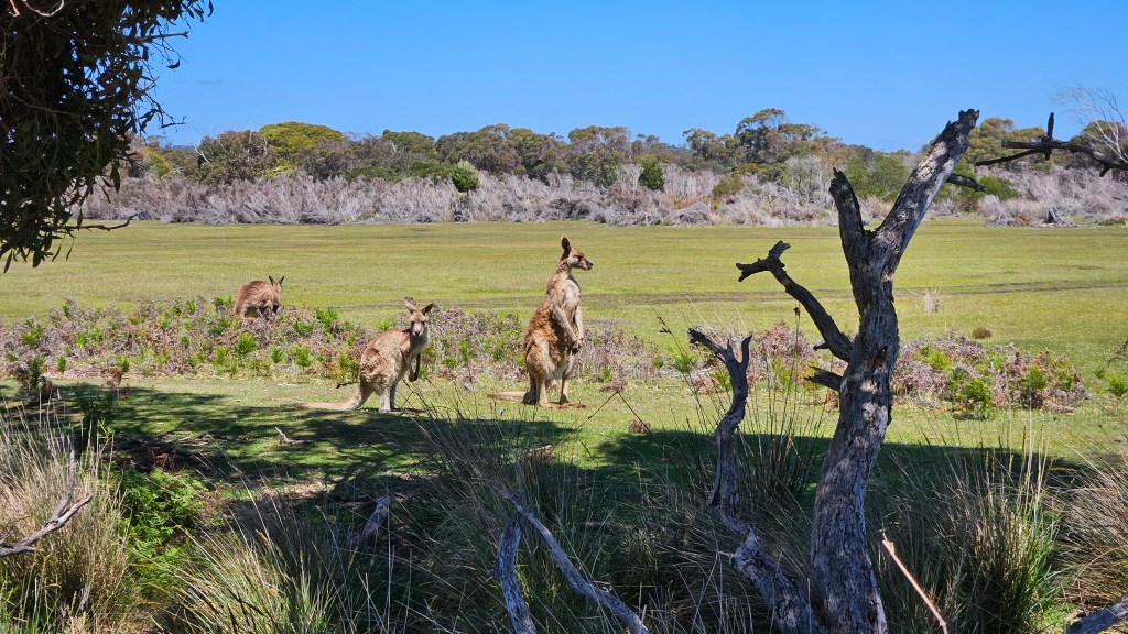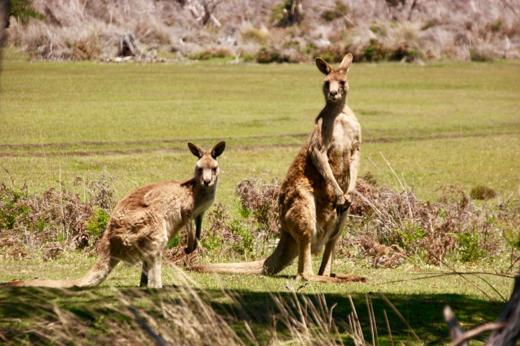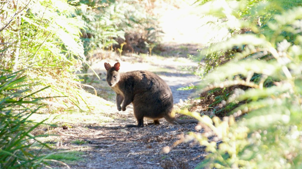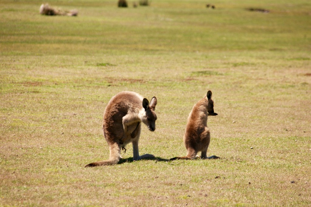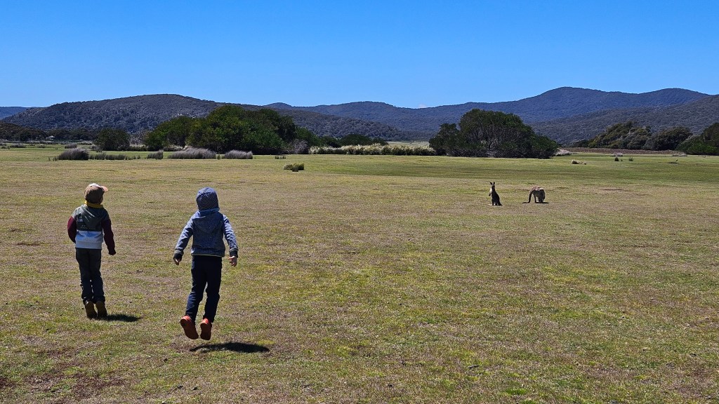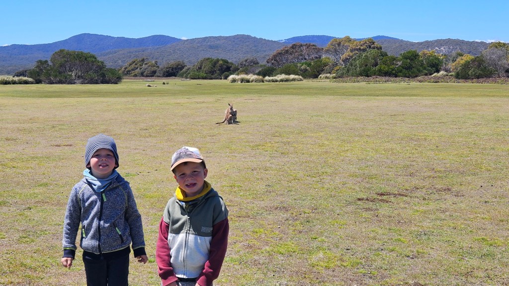Am ersten Tag unternehmen wir einen Tagesausflug zum Narawntapu Nationalpark und werden gleich zu Beginn von zwei Kängurus “begrüßt”. Auf unserer Wanderung durch abwechslungsreiche Natur sind wir fast die einzigen Besucher und können zahlreiche Kängurus, Wallabies, Vögel und einen Ameisenigel beobachten. Ein aufregendes Erlebnis für die Kinder, denn manche Kängurus sind nicht besonders scheu und deutlich größer als die Jungs.