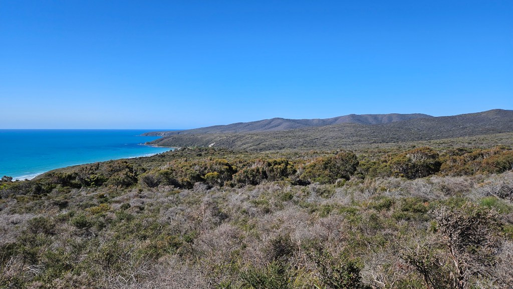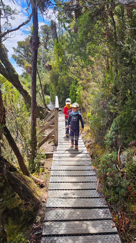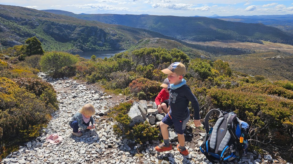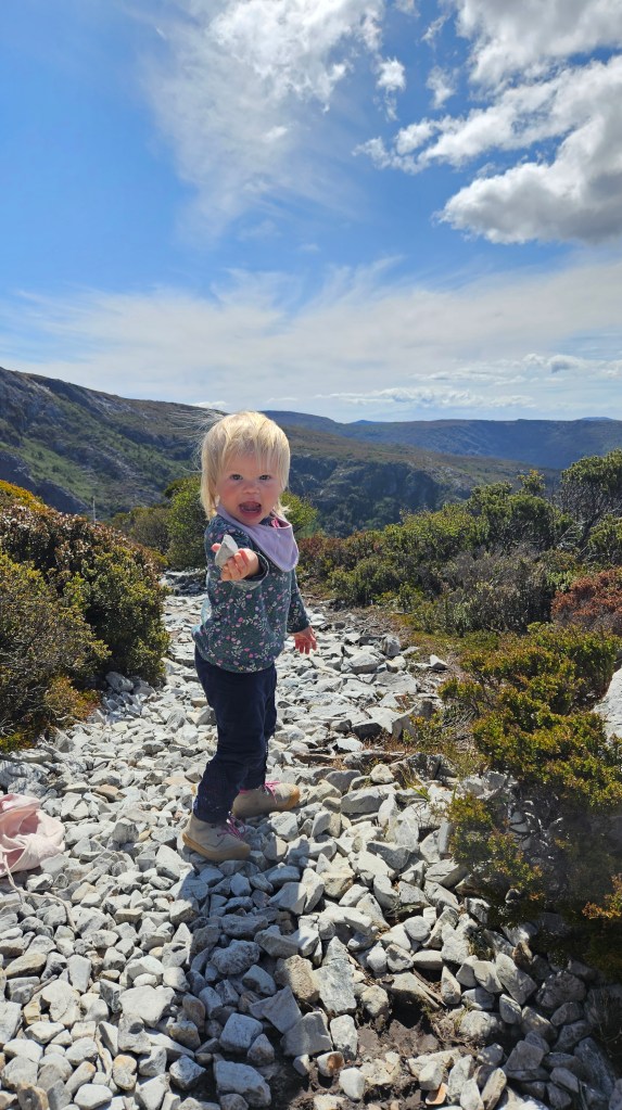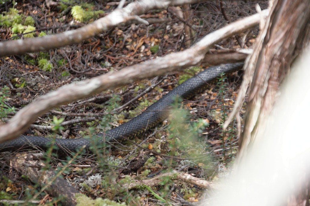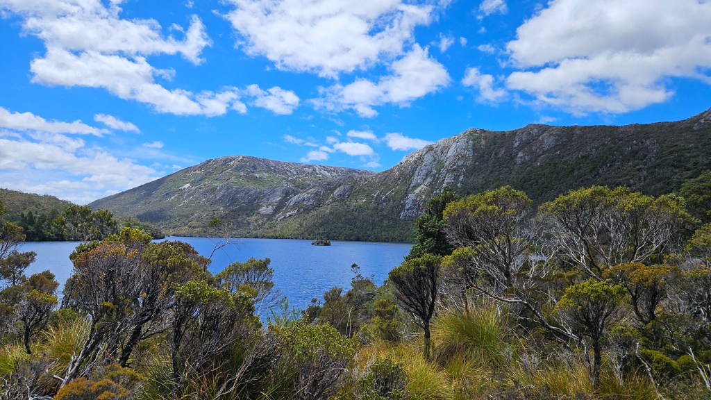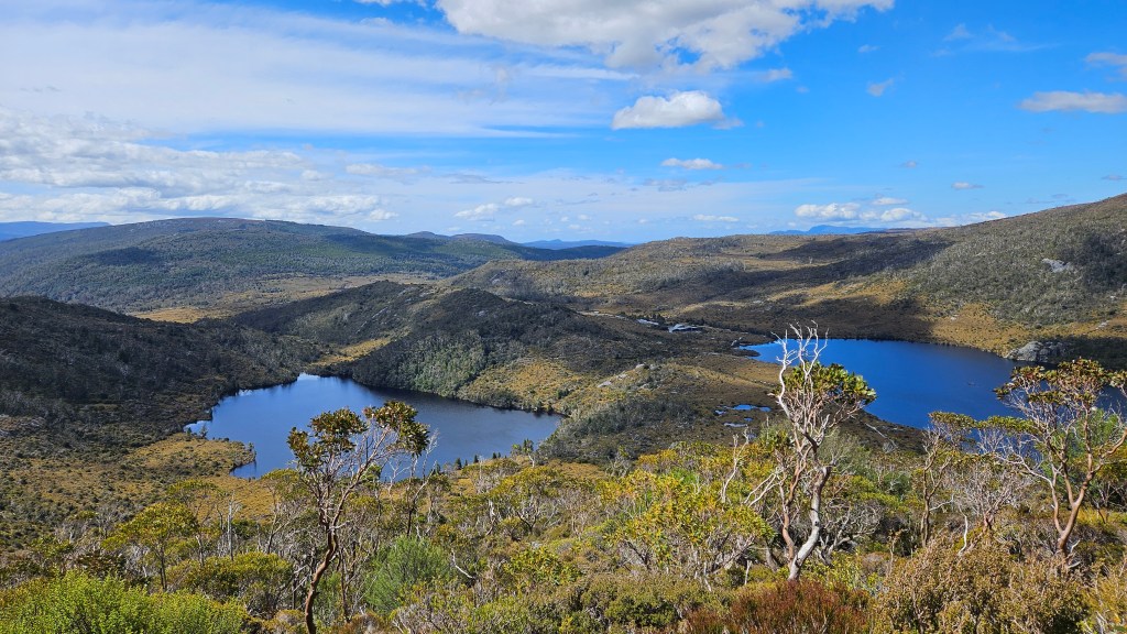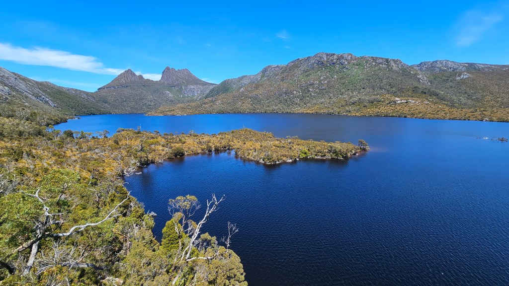 Das Highlight eines jeden Aufenthalts auf Tasmanien ist sicherlich das Hochland rund um den Cradle Mountain im zentralen Bergland. Hier gibt es unzählige Wandermöglichkeiten und auch Mehrtagestouren. Im sehr gut organisierten Visitorcenter bekommen wir viele nützliche Infos und es gibt einen Shuttlebus, der verschiedene Spots anfährt. Wir haben Glück mit dem Wetter und unternehmen eine Wanderung um den Dove Lake. Die Farbvielfalt der Vegetation und Bergkulissen sind atemberaubend und wir spazieren meist über Holzblanken durch beeindruckende Natur. Weniger beeindrucken lies sich eine schwarze Tiegerotter, die 2m neben dem Weg züngelnd auf Beutesuche war und dessen Gift so potent ist, dass sie im Ranking den fünften Platz der gefährlichsten Schlangen Weltweit einnimmt. Leider haben wir sie nicht komplett aufs Fotos bekommen, hatten allerdings auch einen erhöhten Puls in dem Moment und waren auf Abstand bedacht.