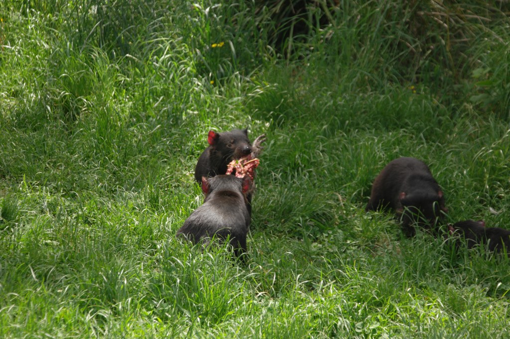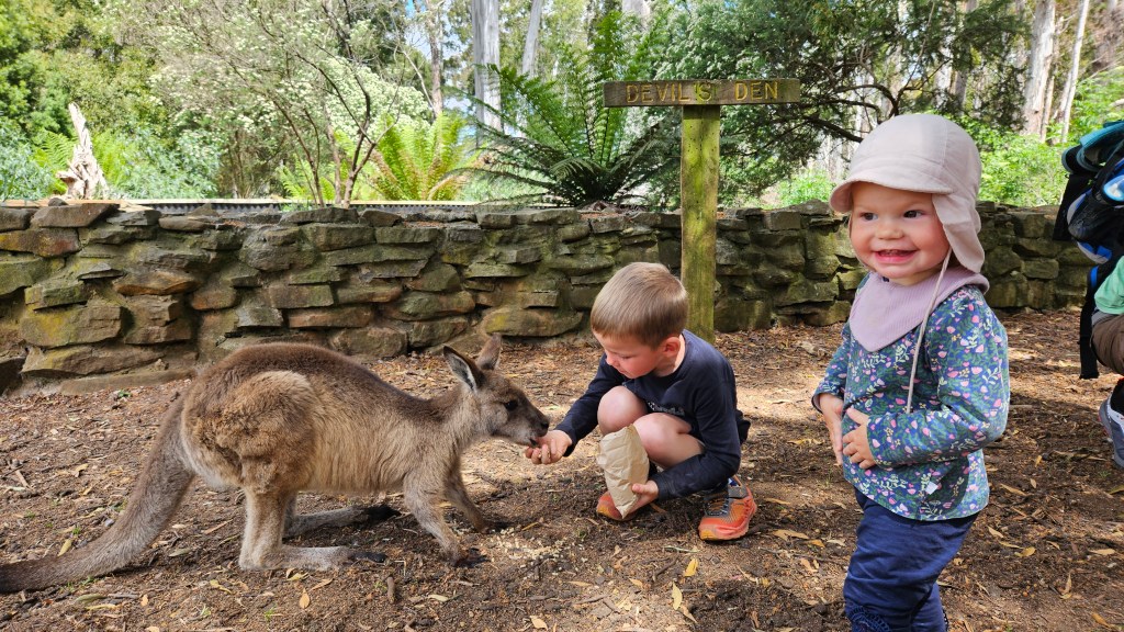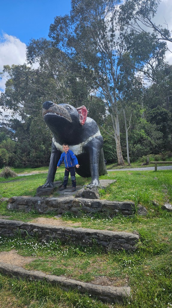 Am 21. November feiern wir Theos fünften Geburtstag (mal wieder) nicht zu Hause sondern diesmal hier auf Tasmanien. Morgens mit Rührei, Kakao, Müsli und Geschenken. Danach geht es in eine Auffangstation für Tasmanische Teufel und andere verletze oder verwaiste Wildtiere. Wir erfahren viele interessante und spannende Fakten über Wombats, Kängurus, Beutelmarder und Tasmanische Teufel. Letztgenannte haben es auf Grund ihres Furcht erregenden Namens, lautem Geschrei und ansteckender Krebserkrankungen schwer. Das nur auf Tasmanien vorkommende Beutelraubtier ist gefährdet und ist in der freien Wildnis nur noch selten anzutreffen, dabei hat der Aasfresser eine wichtige Bedeutung für das Ökosystem und ist für den Menschen völlig ungefährlich. Wir verbringen einen abwechslungsreichen Nachmittag und können die frei umher hüpfenden Kängurus hautnah erleben. Abends gibt es wunschgemäß Königsberger Klopse und Eis zur Nachspeise. Nicht nur für Theo ein unvergesslicher Geburtstag.