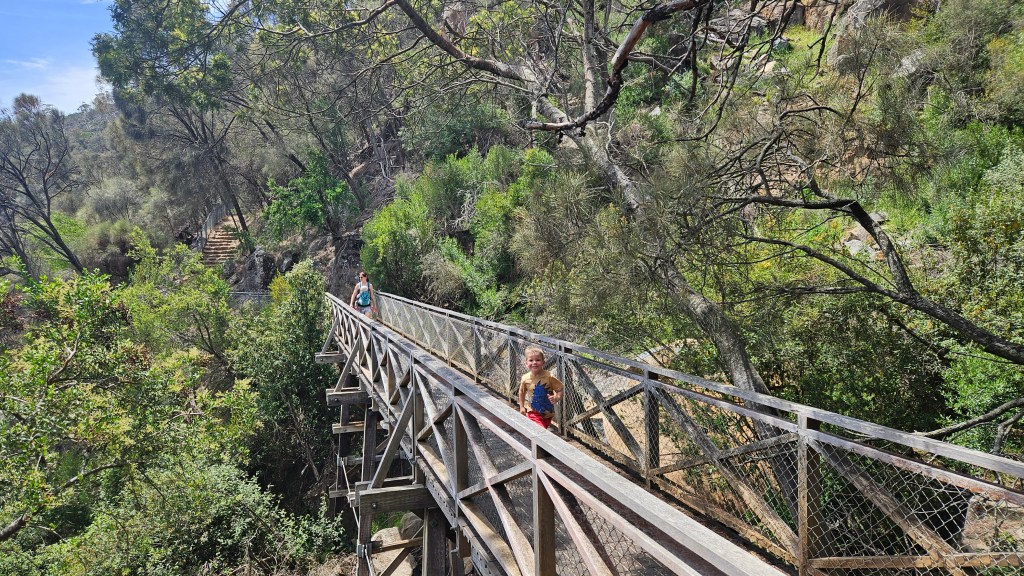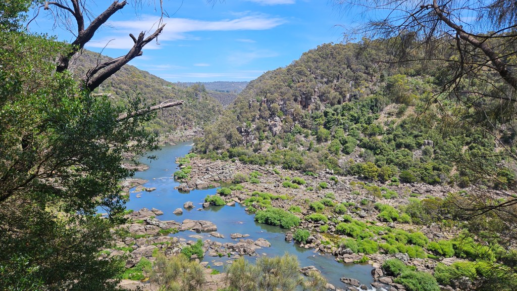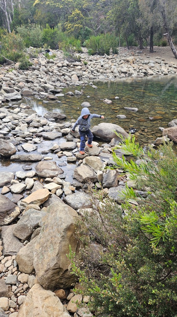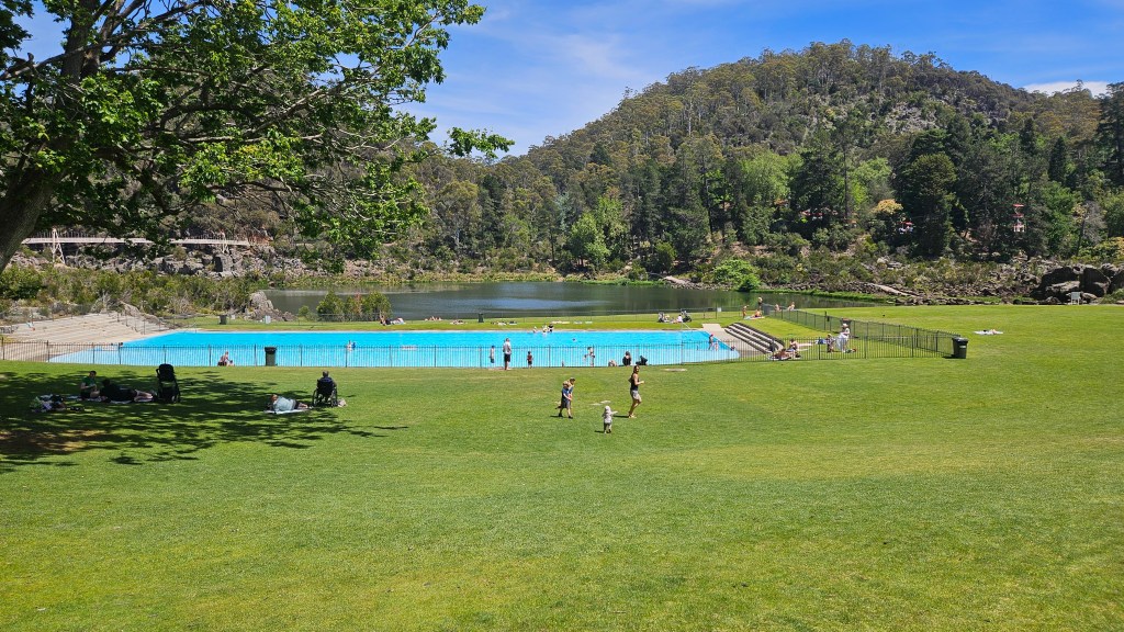 Nach Theos Geburtstag verlassen wir das zentrale Bergland und reisen in östliche Richtung über Launceston weiter, wo wir einen kurzen Zwischenstop einlegen und am South Esk River entlang wandern. Die Temperaturen sind an diesem Tag deutlich wärmer als zuvor und wir erfrischen uns im Pool des Cataract George Parks.