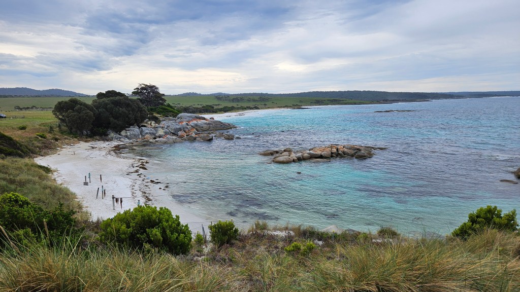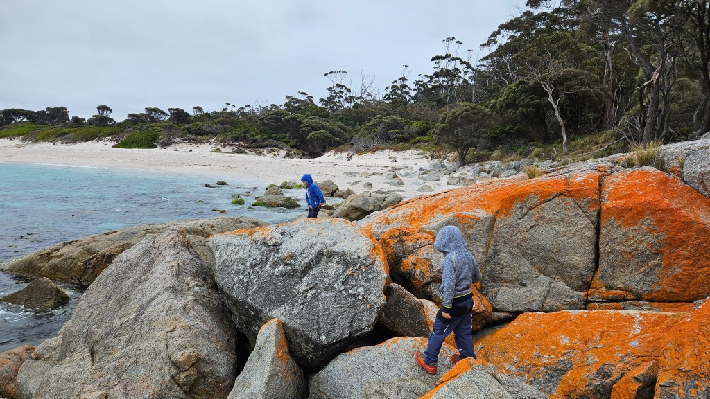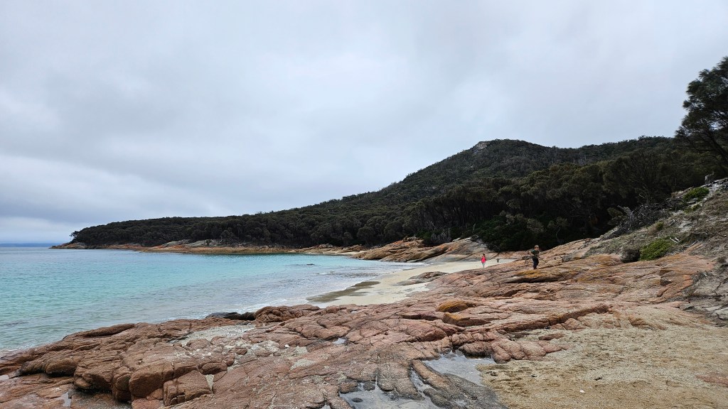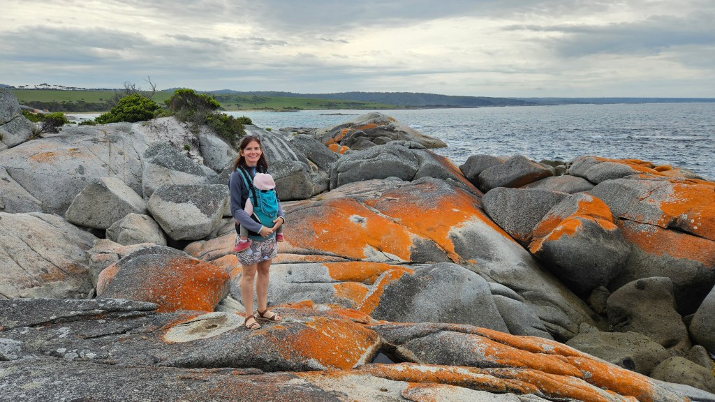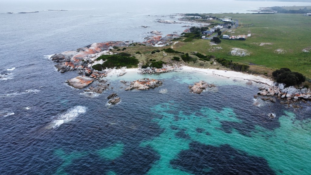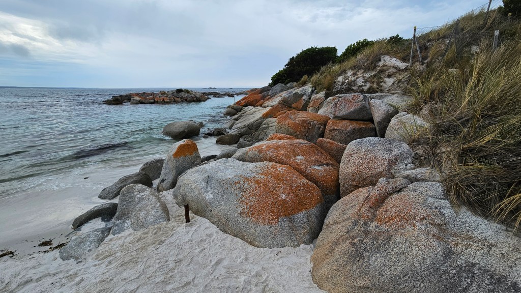 Abends erreichen wir die Ostküste Tasmaniens und richten uns für zwei Nächte in St. Helens in einem gemütlichen kleinen Bungalow direkt neben einem Spielplatz ein. Wir schauen uns das kleine sympathische Fischer- und Urlaubsstädtchen zu Fuß an und probieren uns in einer Bäckerei durch viele leckere Blätterteig Küchlein. Außerdem schauen wir uns die „Bay of Fires“ an. Diese Buchten mit ihren roten Felsen, weißen Sandstränden und türkisfarbenem Wasser bieten eine tolle Kulisse. Die kältere Wassertemperatur, die Quallen im Wasser und das Vorhandensein weißer Haie laden nicht zum ausgiebigen schwimmen ein.