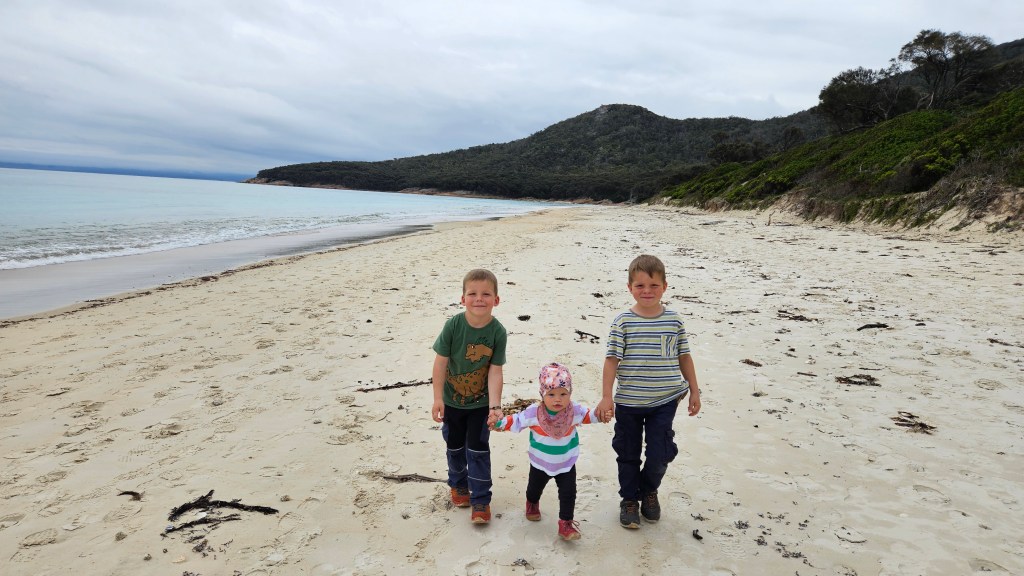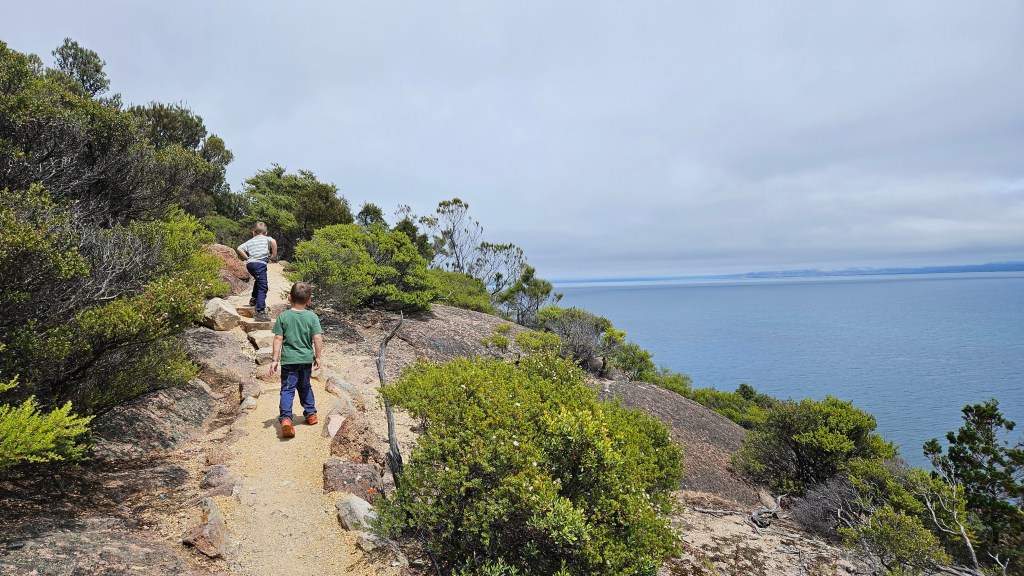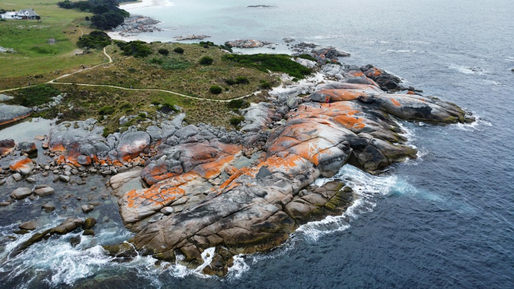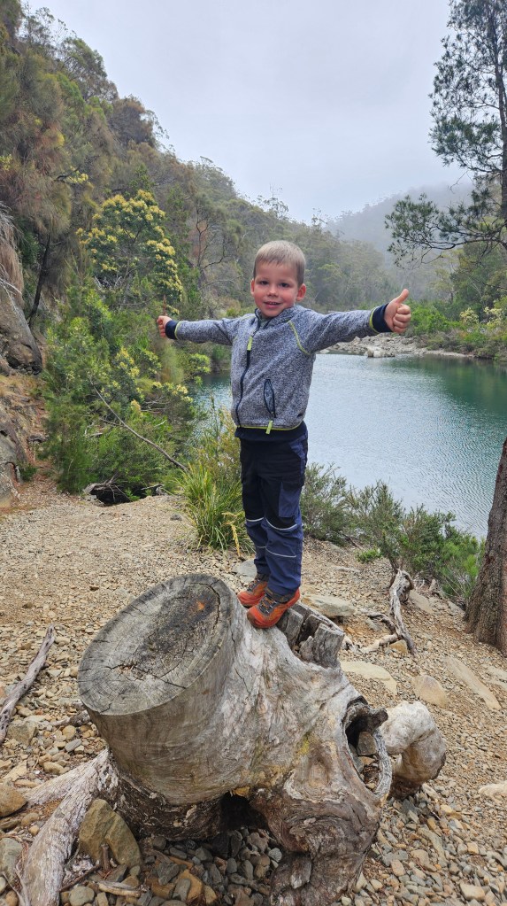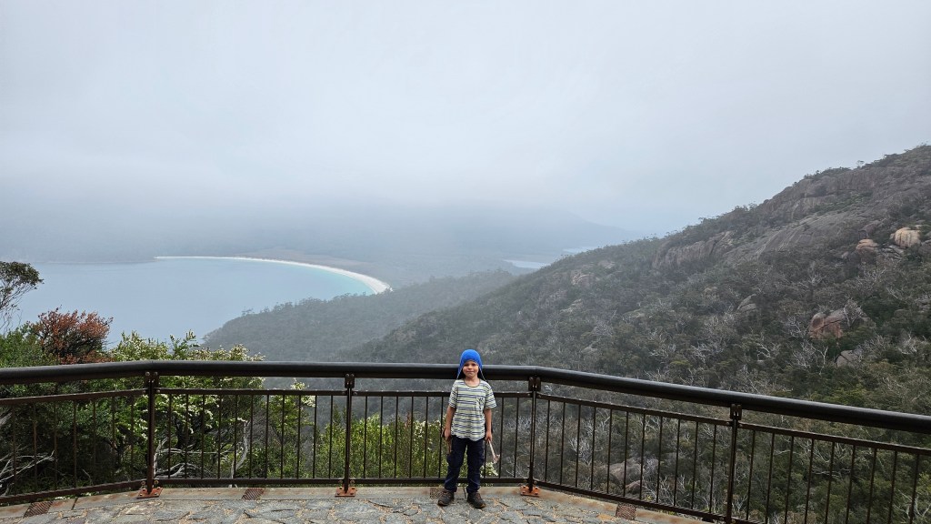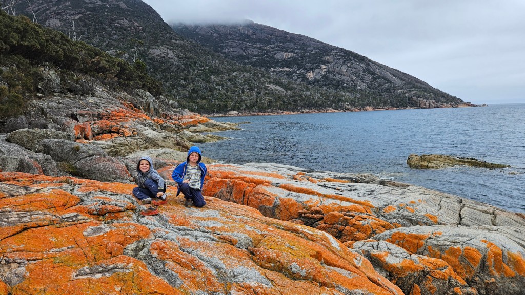 Abends erreichen wir die Ostküste Tasmaniens und richten uns für zwei Nächte in St. Helens in einem gemütlichen kleinen Bungalow direkt neben einem Spielplatz ein. Wir schauen uns das kleine sympathische Fischer- und Urlaubsstädtchen zu Fuß an und probieren uns in einer Bäckerei durch viele leckere Blätterteig Küchlein. Außerdem schauen wir uns die „Bay of Fires“ an. Diese Buchten mit ihren roten Felsen, weißen Sandstränden und türkisfarbenem Wasser bieten eine tolle Kulisse. Die kältere Wassertemperatur, die Quallen im Wasser und das Vorhandensein weißer Haie laden nicht zum ausgiebigen schwimmen ein.