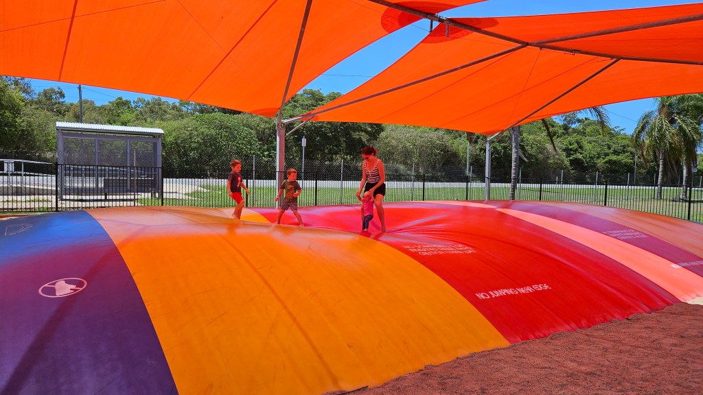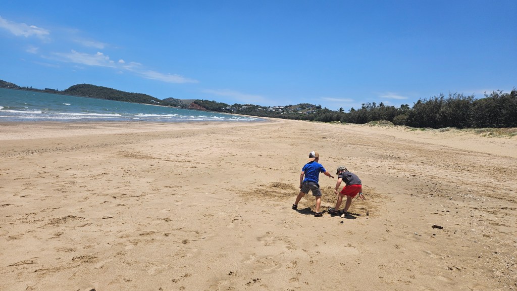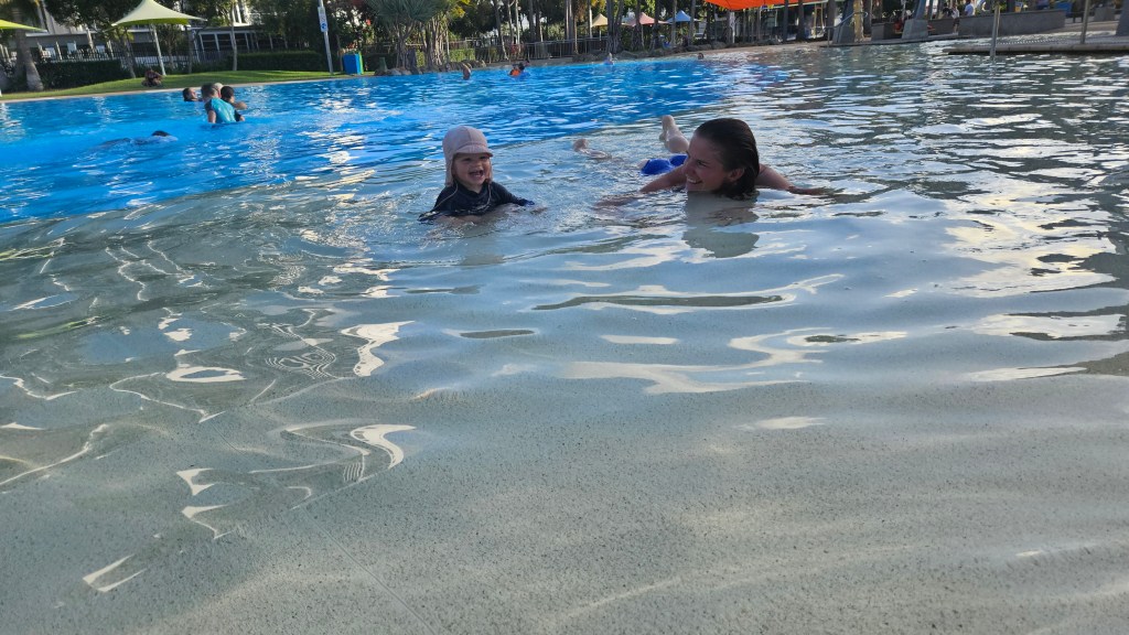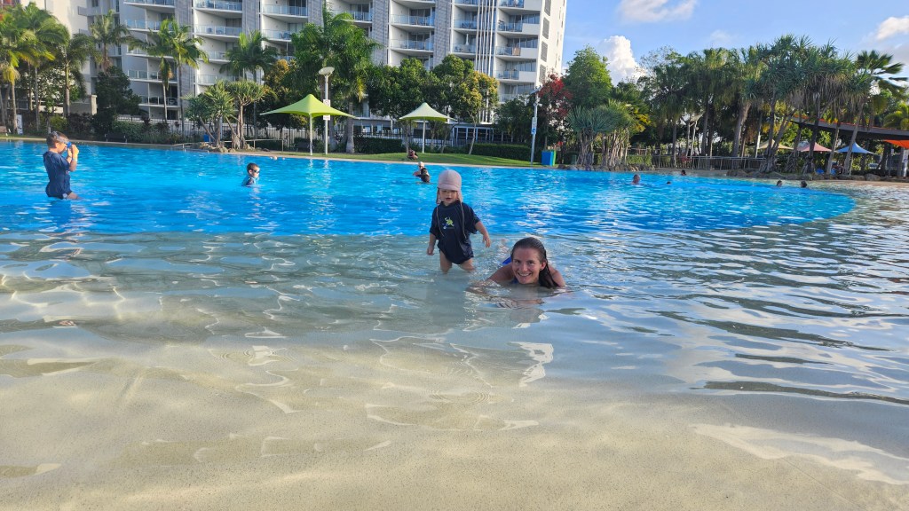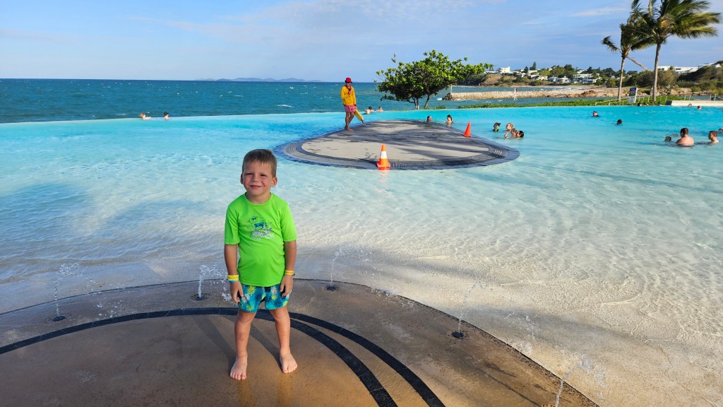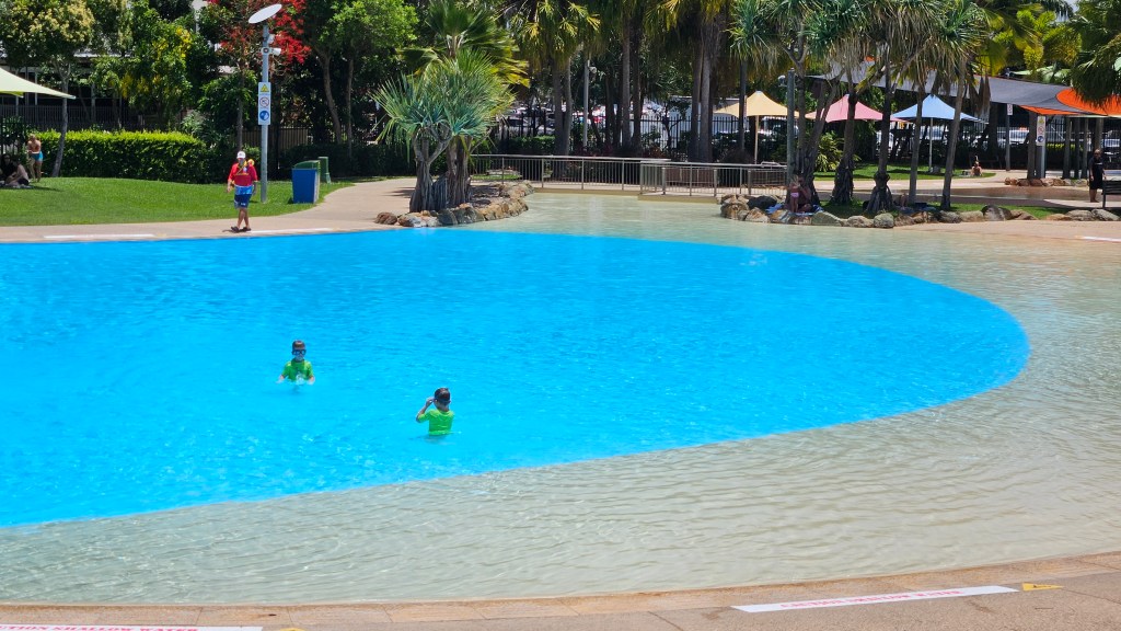Immer noch ist das Wetter an der Ostküste subtropisch aber je südlicher wir gelangen, desto weniger Luftfeuchte. In Mackay verbringen wir einen heißen Tag in der Bluewater Lagune, einem großzügigem Pool der für jeden kostenfrei zugänglich ist. Das Wasser hat Badewannentemperatur und die Kids haben ihren Spaß. Erstaunlich wie sauber und gepflegt die Anlage ist und es sind mehrere “Life guards” im Einsatz, die den Wasserbereich überwachen. Wir fragen uns, warum es sowas in Deutschland nicht gibt und wahrscheinlich nicht lange funktionieren würde.