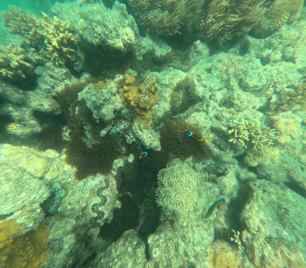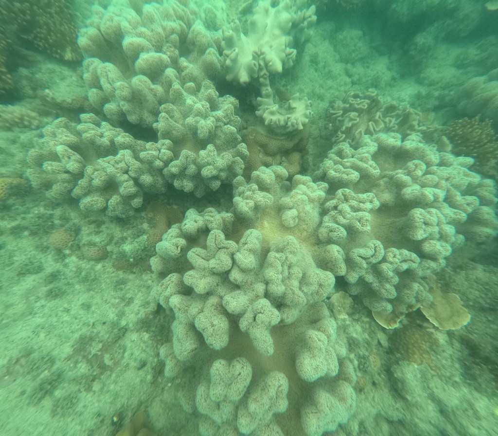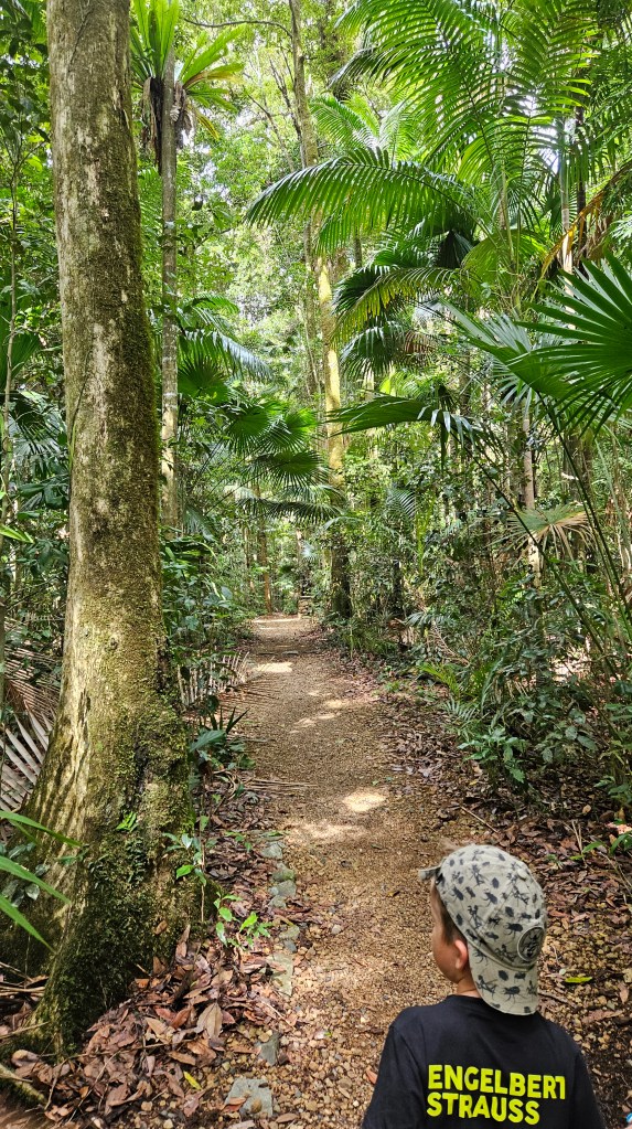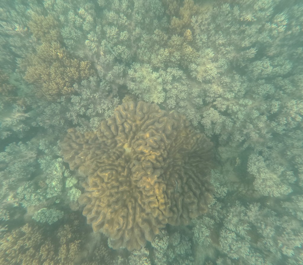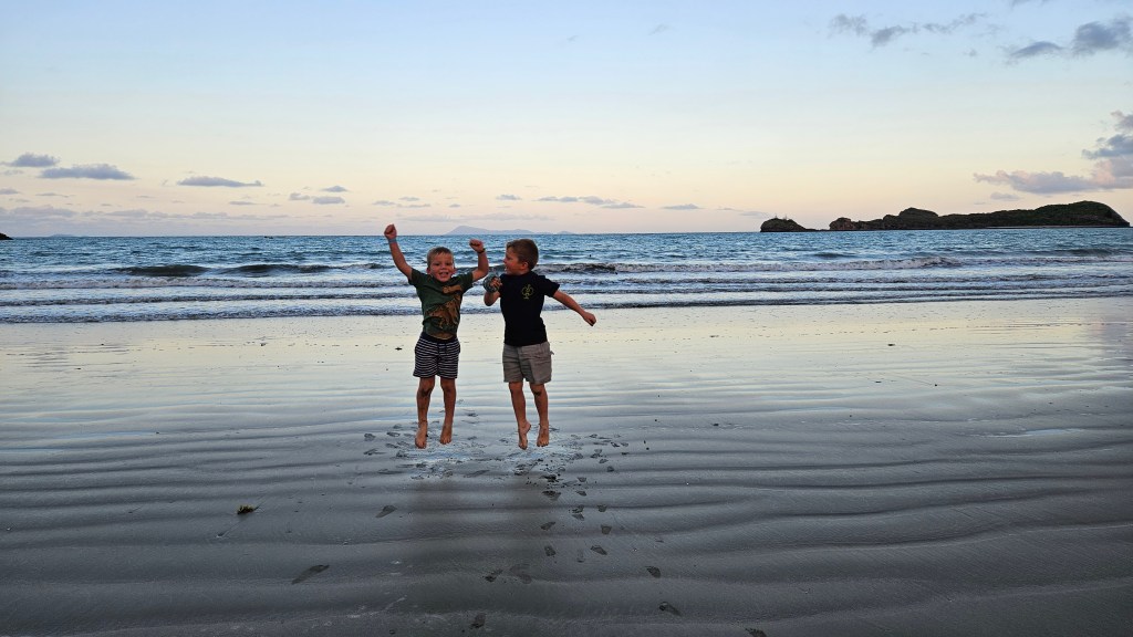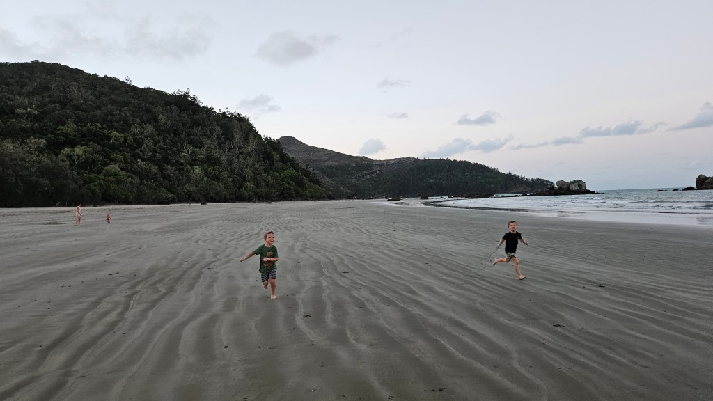 An einem weiteren Tag unternimmt Michael einen Schnorchelausflug zu einer der vorgelagerten Inseln des Great Barrier Reefs und Marie und die Kinder verbringen den halben Tag am Wasserspielplatz der Unterkunft. Leider ist die Strömung an diesem Tag stark und die Sicht nicht gut. Die vielen bunten Korallen sind dennoch beeindruckend, auch wenn nicht so viele Fische unterwegs sind wie erhofft. Abends unternehmen wir einen Strandspaziergang am Kap Hillsborough, der Teil eines Naturschutzgebietes ist und ein beliebter Anlaufpunkt für Naturliebhaber.