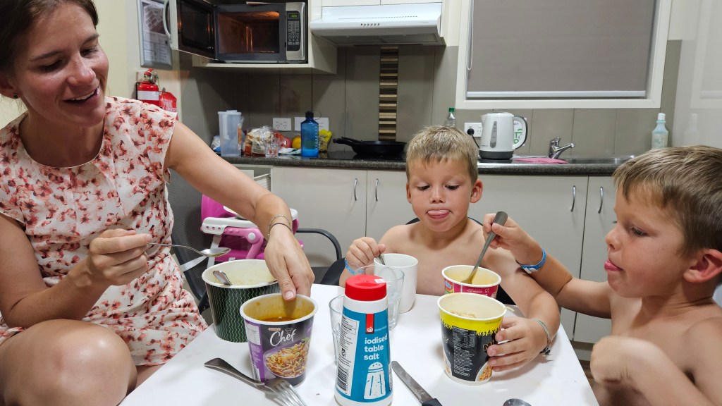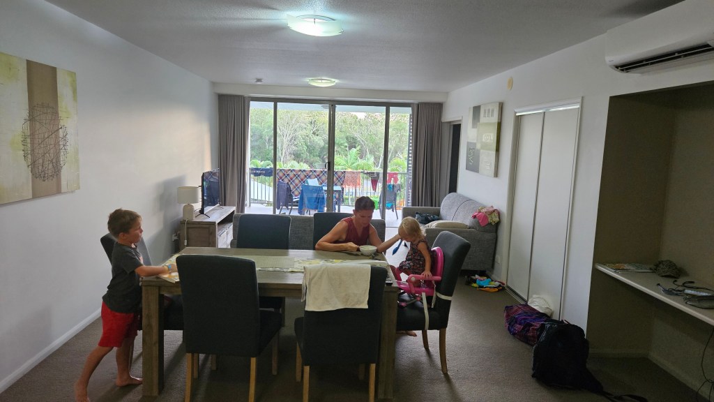 Nach einem ausgiebigen Frühstück und Einkaufen fast wie zu Hause, geht die Reise weiter nach Rockhampton. Auf der vierstündigen Autofahrt gibt es außer ein paar Tankstellen, Rastplätze und kargen Rinderweiden wenig zu sehen. Abends in der neuen Ferienwohnung haben wir zum zweiten Mal einen Ofen und zum ersten Mal gibt es leckere selbstgemachte Pizza.
