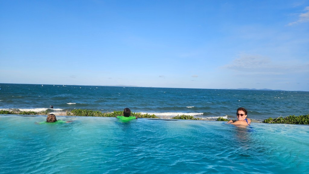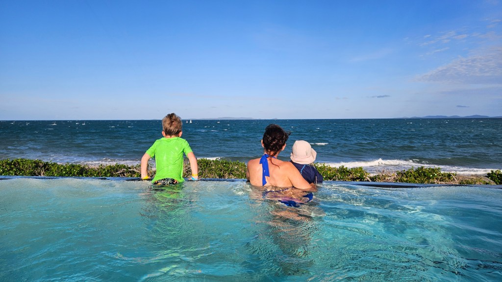 Natürlich verlassen wir Rockhampton nicht, ohne einen weiteren entspannten und traumhaften Badetag im Freiwasserpool mit Meerblick.