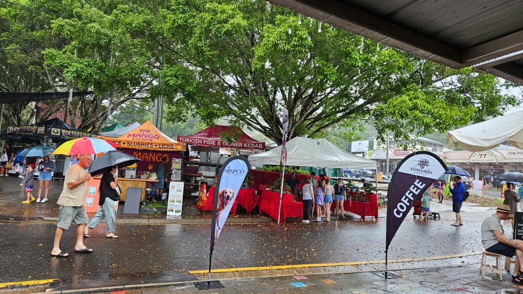Am nachfolgenden Tag geht es über den Eumundi Markt, einem Handwerkermarkt und über die Glass Mountains weiter bis in das ca. 2h entfernte Brisbane. Leider etwas Regen aber nicht wirklich kalt. Wir nutzen die Zeit um Weihnachtsgeschenke zu kaufen und grillen abends in einem Stadtpark.