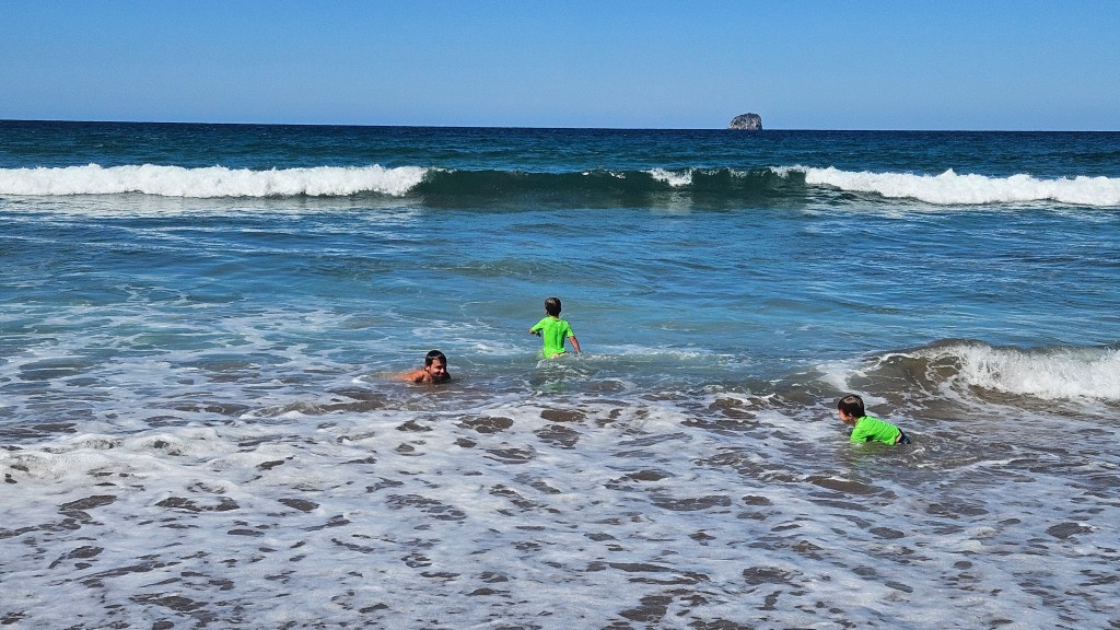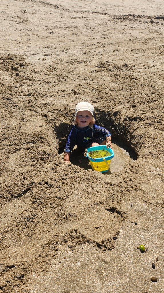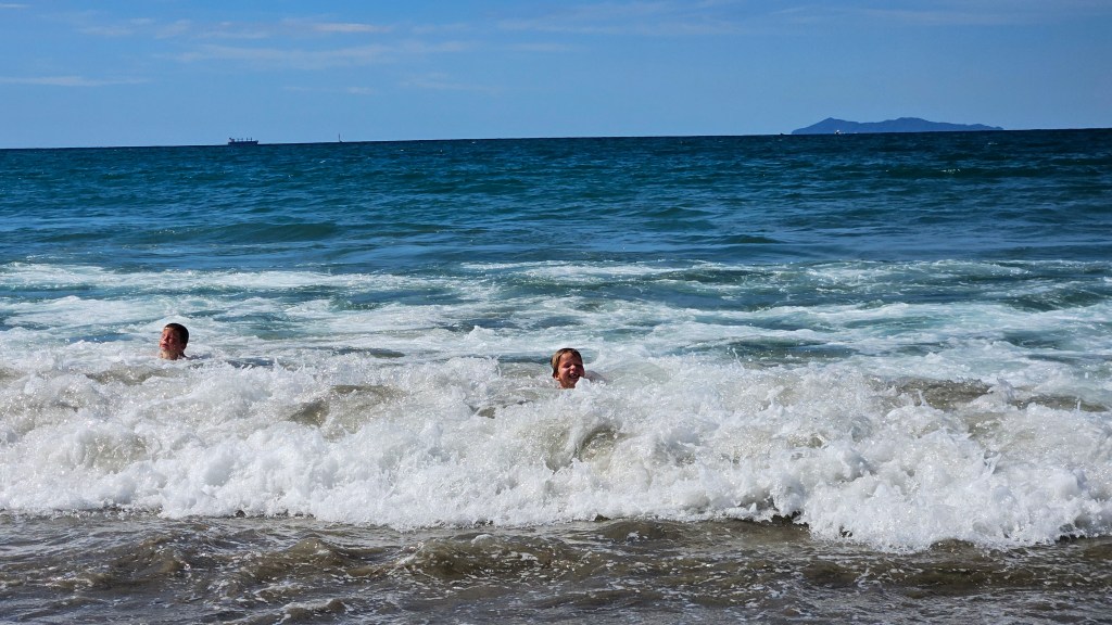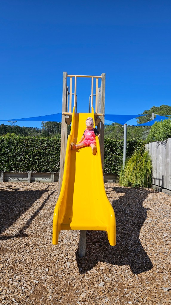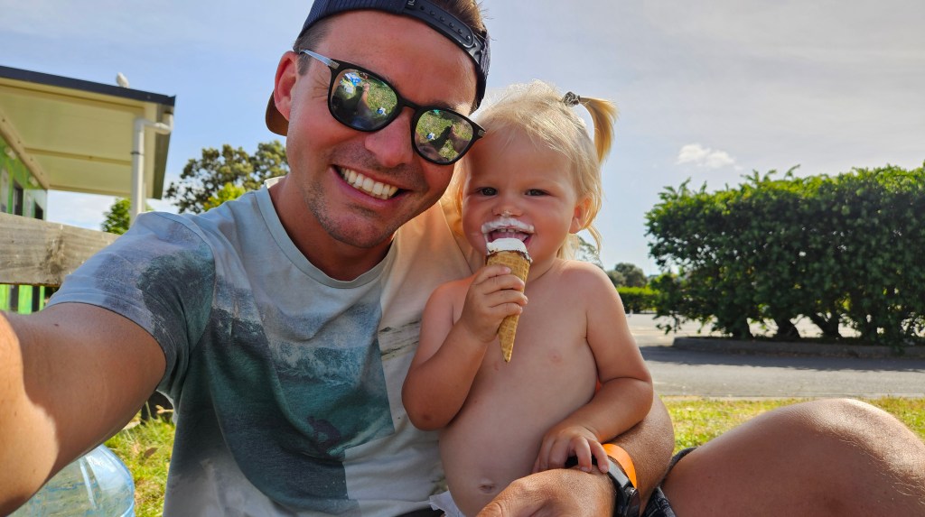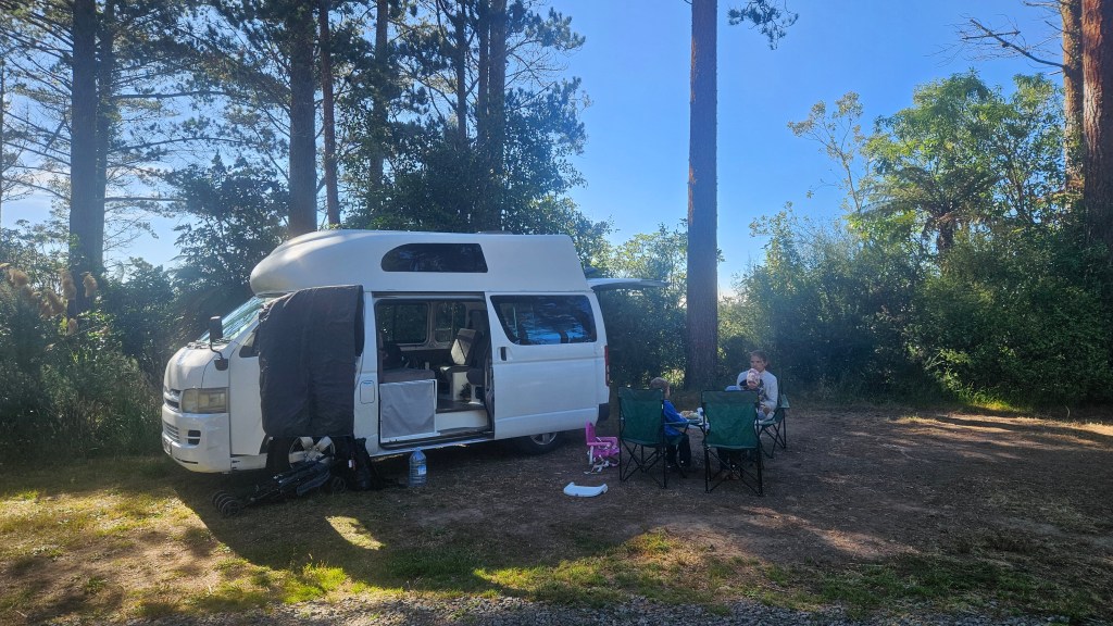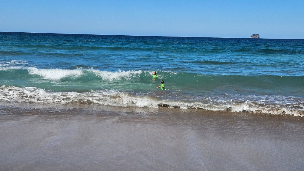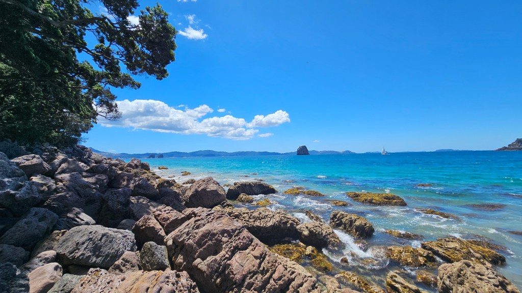Am nächsten Tag ist es noch wärmer (ca. 27°C) und wir besuchen die Cathedral Cove, die nur zu Fuß oder per Boot zu erreichen ist. Auch hier sind wir nicht alleine und unterwegs treffen wir erneut eine deutsche Familie mit Kindern im gleichen Alter. Am Strand angekommen, wirkt die mächtige Höhle tatsächlich wie eine Kathedrale. Wir verbringen erneut einen wunderschönen Tag am Meer und tanken nochmal richtig Sonne. Abends fahren wir auf kurviger Strecke durch den Coromandel Nationalpark und verbringen die Nacht alleine auf einem abgelegenen Plätzchen.