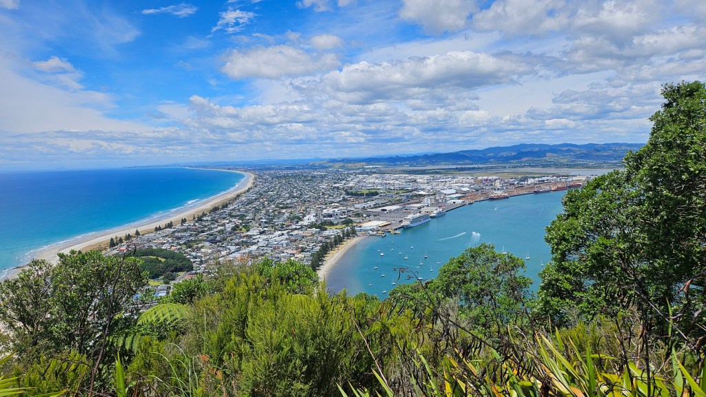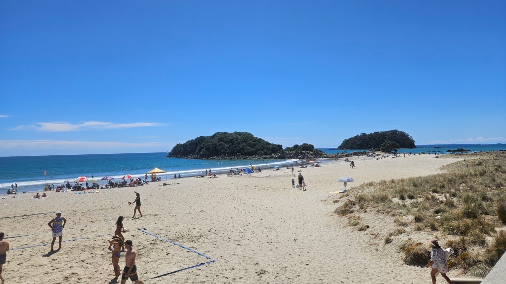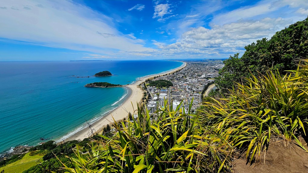 Am darauffolgenden Morgen fahren wir wieder an die die Küste und machen einen Sonntagsausflug zum Mount Maunganui, der von malerischen Stränden und grünen Wiesen umgeben ist. Nach etwa einstündigem, moderatem Aufstieg haben wir einen phantastischen Blick auf die umliegende Küste und den Ozean. Nach dem Abstieg heißt es, raus aus den Klamotten und ab in die Wellen!